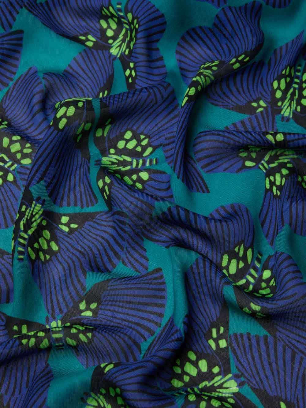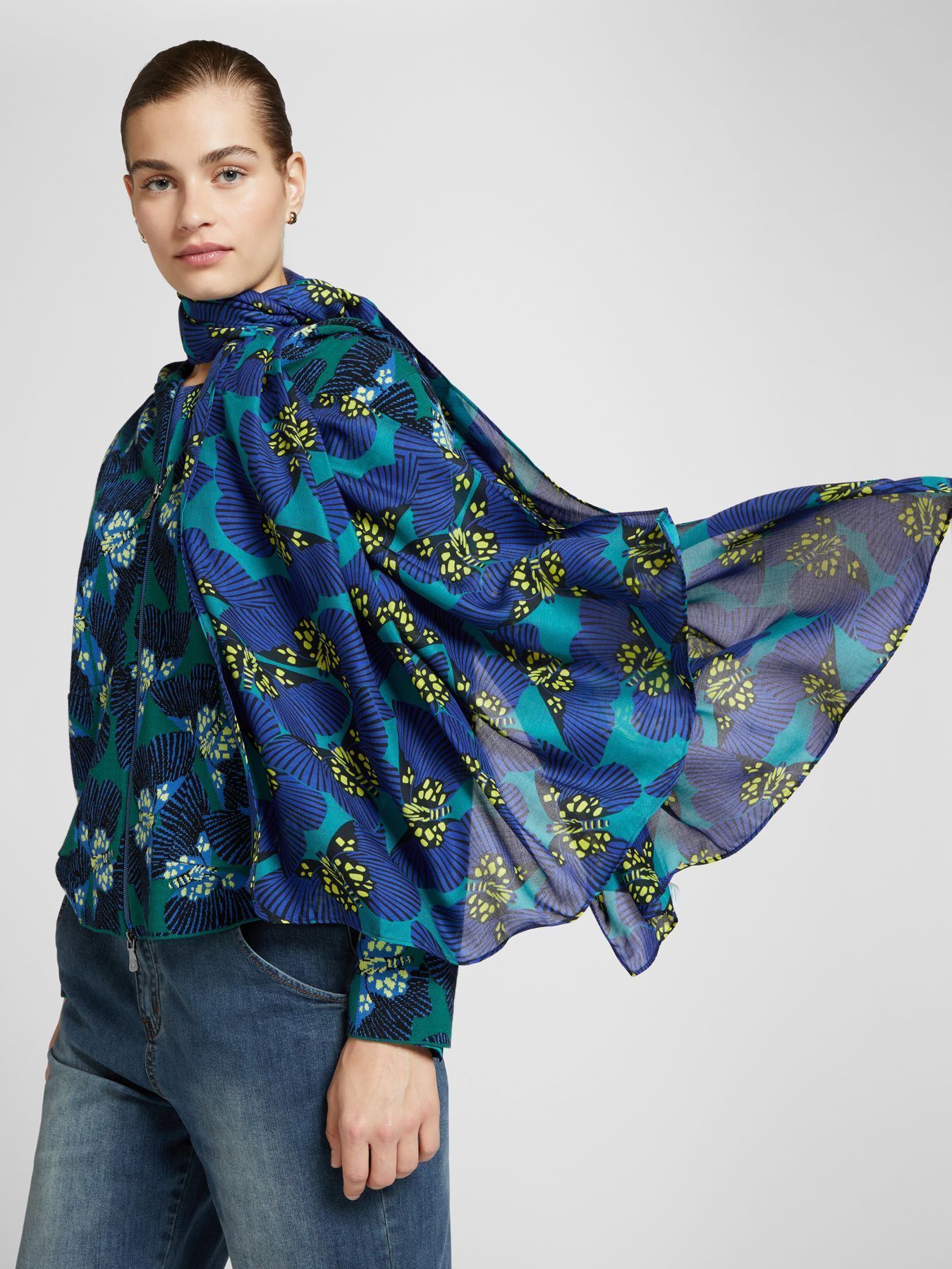 Платок из модала, ткани, известной своей невероятной мягкостью и воздушностью. Каждая нить этого роскошного материала пропитана нежностью и легкостью. Геометрический рисунок создаёт динамичный и стильный образ.