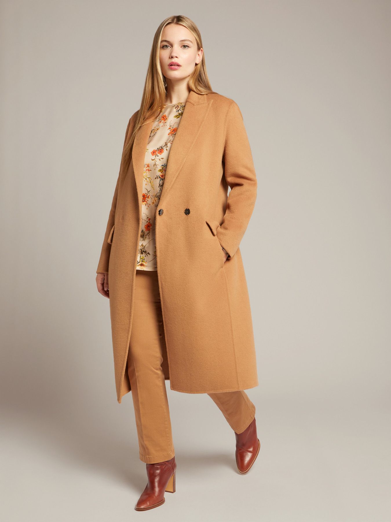 Однобортное пальто бежевое