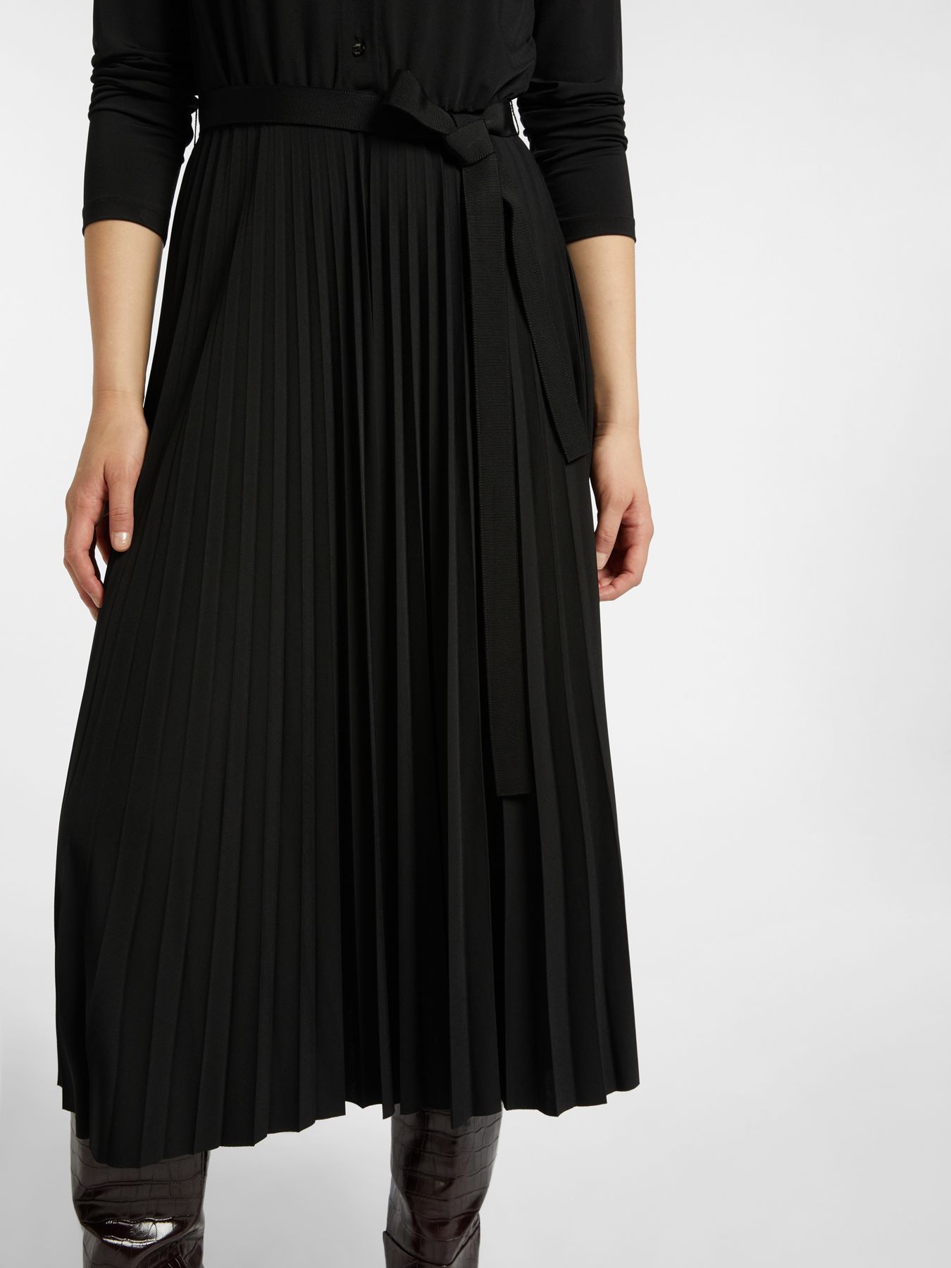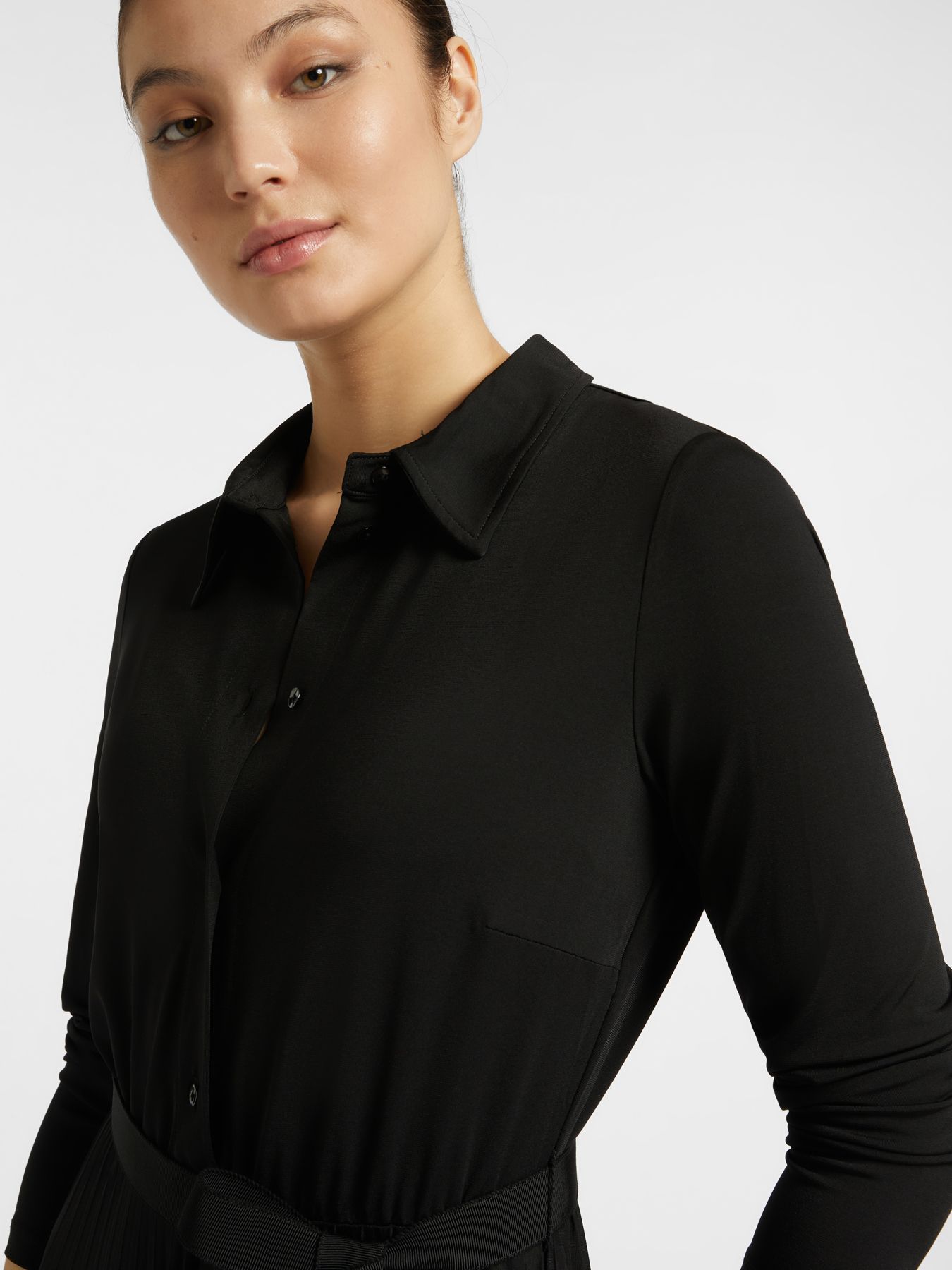 Женственное и удобное платье-шемизье с рубашечным воротником и плиссированной юбкой-миди. Идеальный наряд как для будней, так и для вечерних выходов.