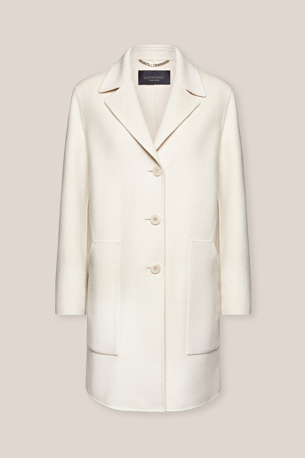 Классическое пальто из шерсти. Такое изделие — маст хэв для каждой женщины. Воротник с лацканами, застежка на пуговицы и кнопки, а также накладные карманы. Без подкладки.
