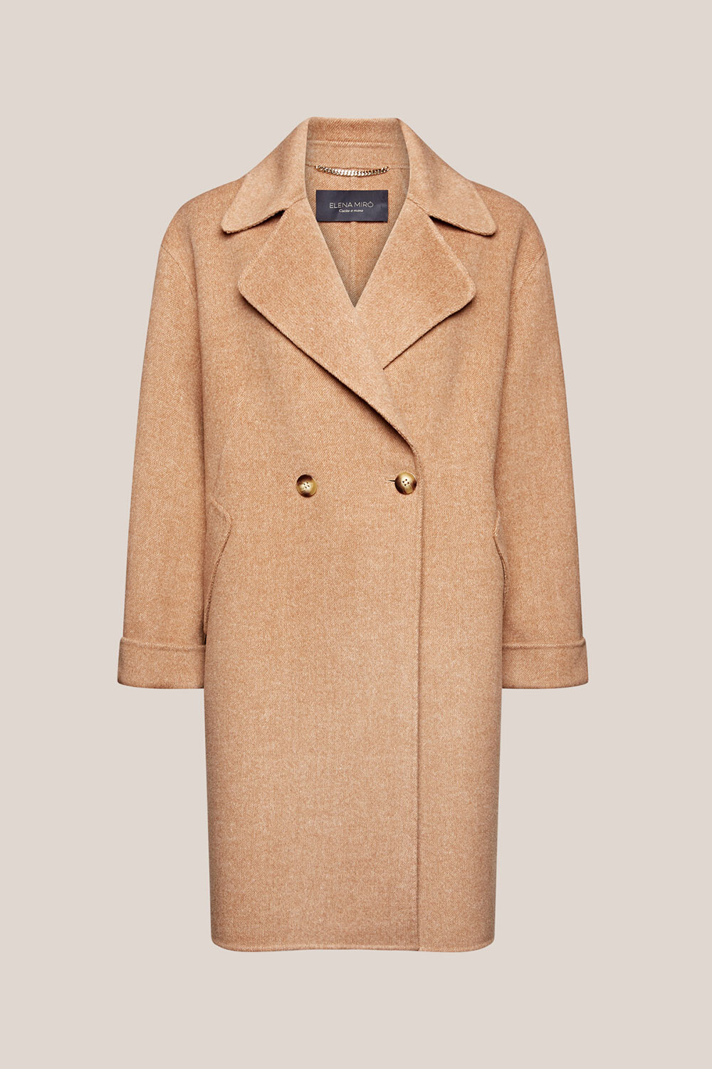 Двубортное пальто из 100% шерсти бежевое
