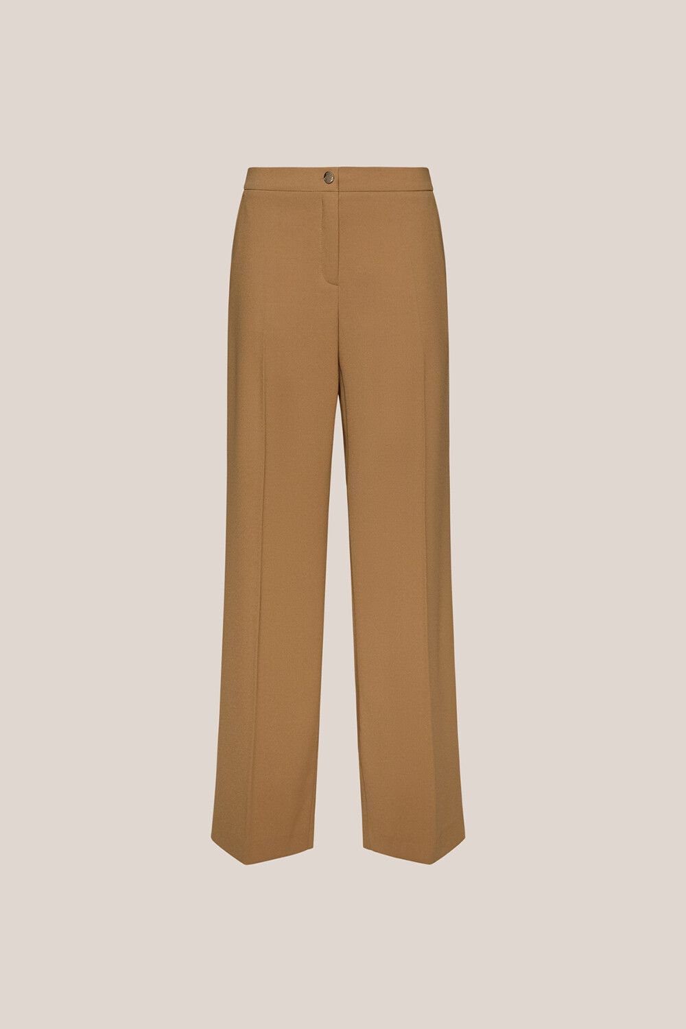 Прямые брюки из переработанного эластичного крепа. Косые карманы и отутюженная складка по центру брючины придают элегантность изделию. Базовая модель в женском гардеробе. Идеально сочетается с жакетом в комплекте. Подходит как для повседневных, так и для формальных случаев.