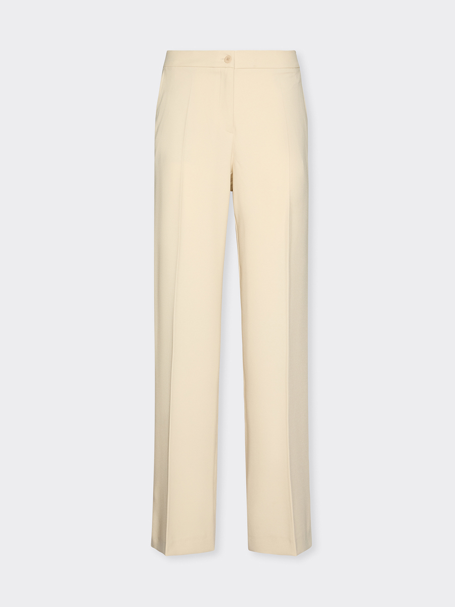 Прямые брюки из лёгкого кади. Классический крой, стандартная талия, косые карманы. Заутюженная складка по центру брючины визуально удлиняет силуэт. Незаменимая модель, подходящая для самых разных случаев. Прекрасно сочетается с жакетом в комплекте.