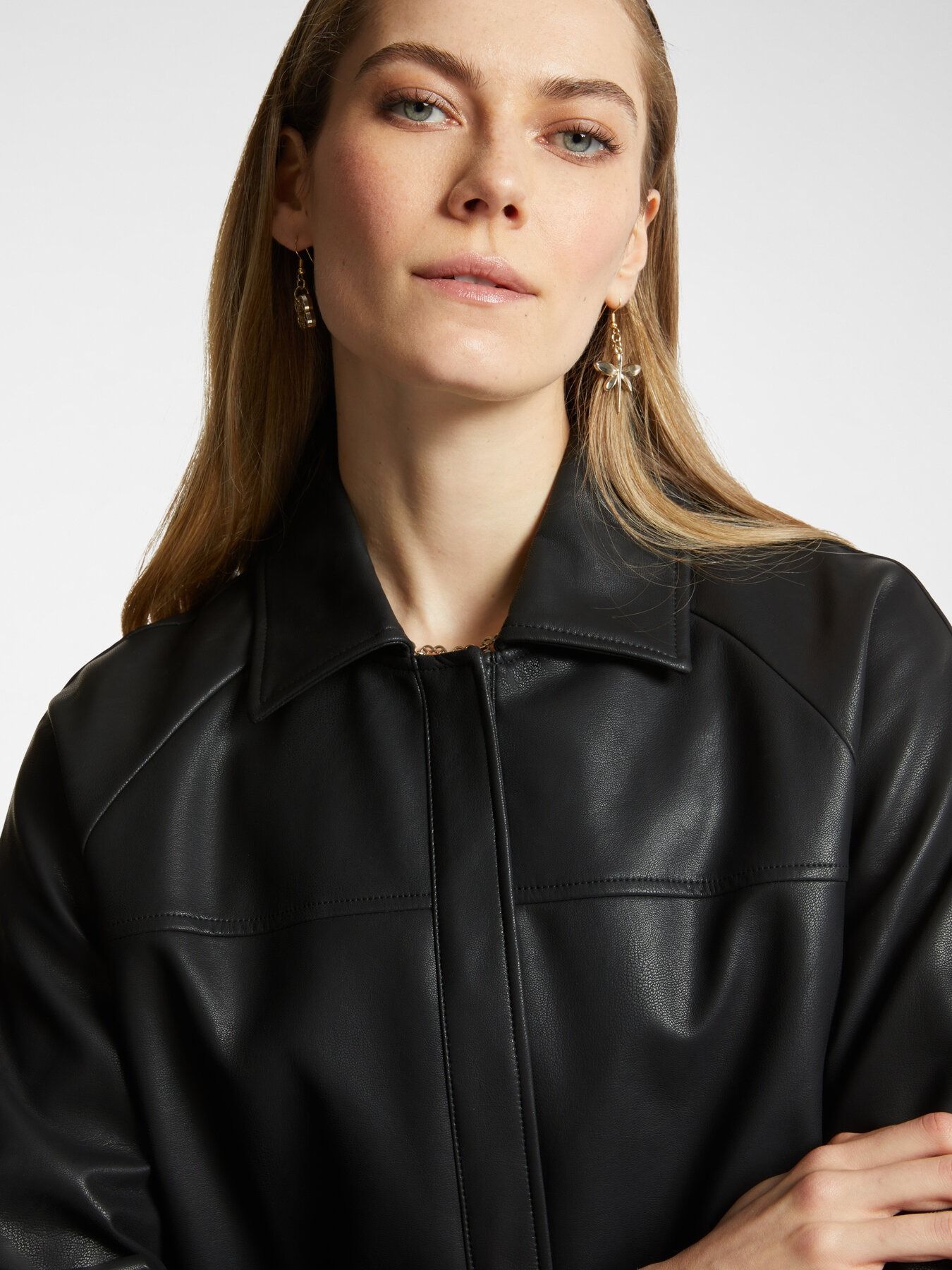 Куртка из приятной экокожи выполненной из вискозы. Рубашечный воротник / женственные расклешенные рукава длиной 7/8. Настоящий must-have для повседневных и формальных образов