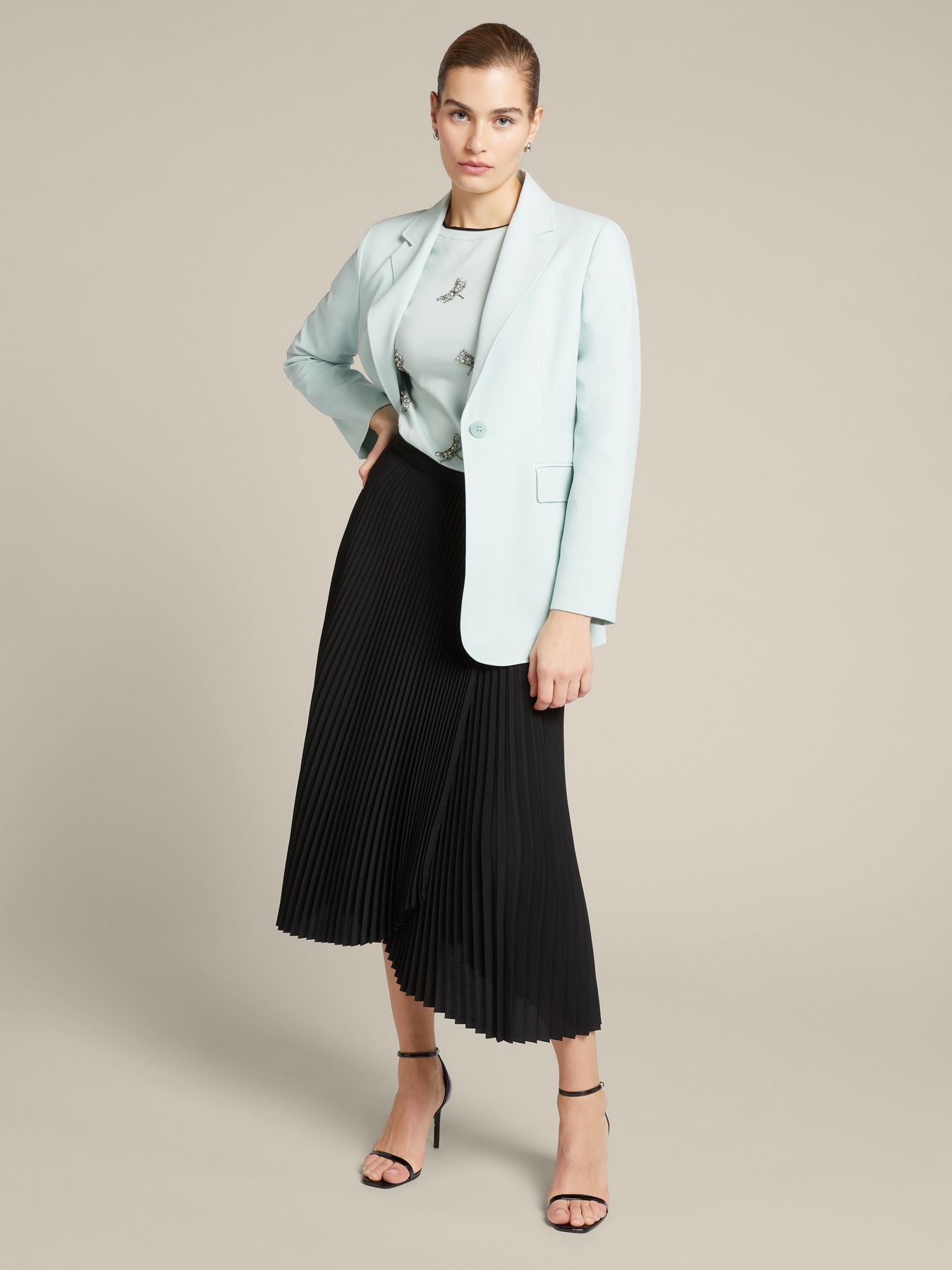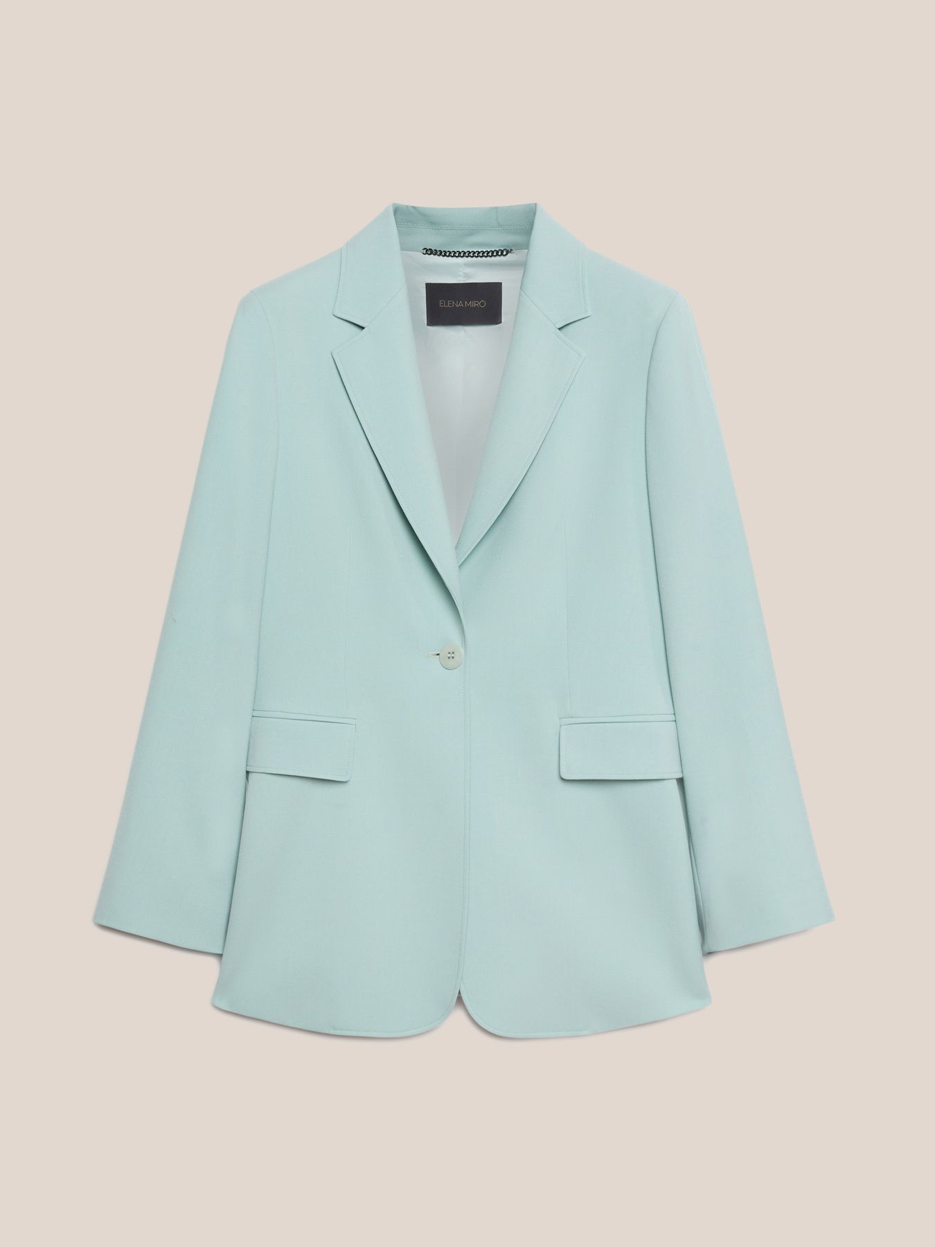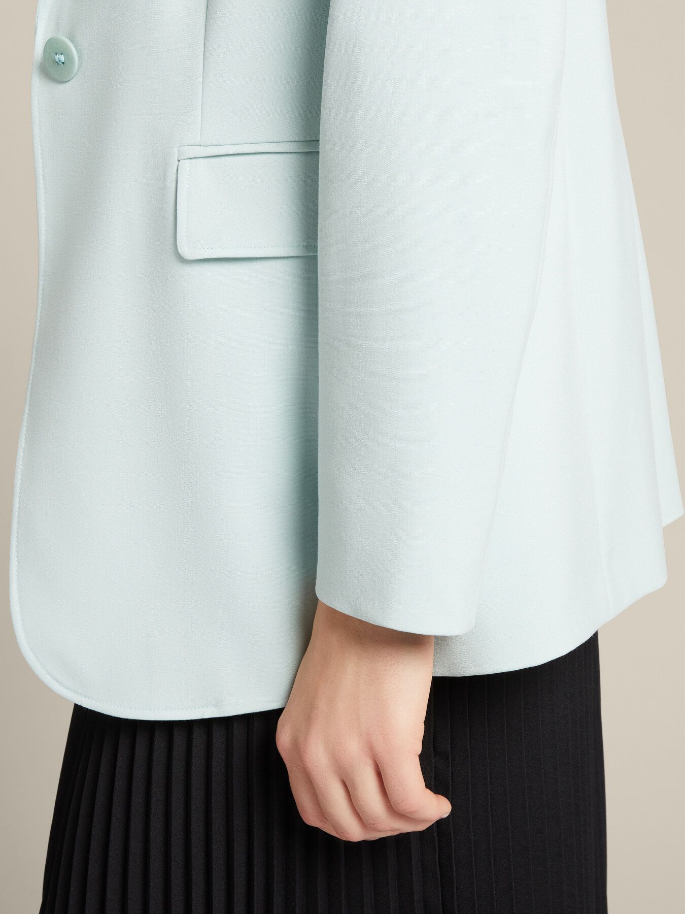 Элегантный однобортный жакет приталенного кроя. Актуальная модель как с мужского плеча из легкой ткани со стрейч эффектом, обеспечивает идеальную посадку и свободу движений. На подкладке, с лацканами, клапанами на карманах. Идеален с зауженными брюками в тон, а также с легкими платьями и джнсами. Размер на модели: 46 RUS (44 IT) Параметры модели: рост 178 см, грудь 92 см, талия 66 см, бедра 101 см.