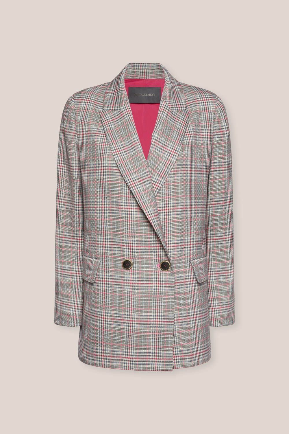 Двубортный жакет из эластичной поливискозы. Универсальная и эклетичная модель в стиле спорт-шик, отлично подходящая как для повседневных образов, так и для более формальных мероприятий.