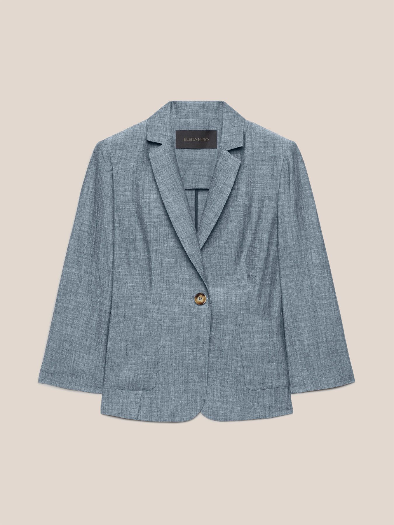 Однобортный льняной жакет с эффектом деним серый