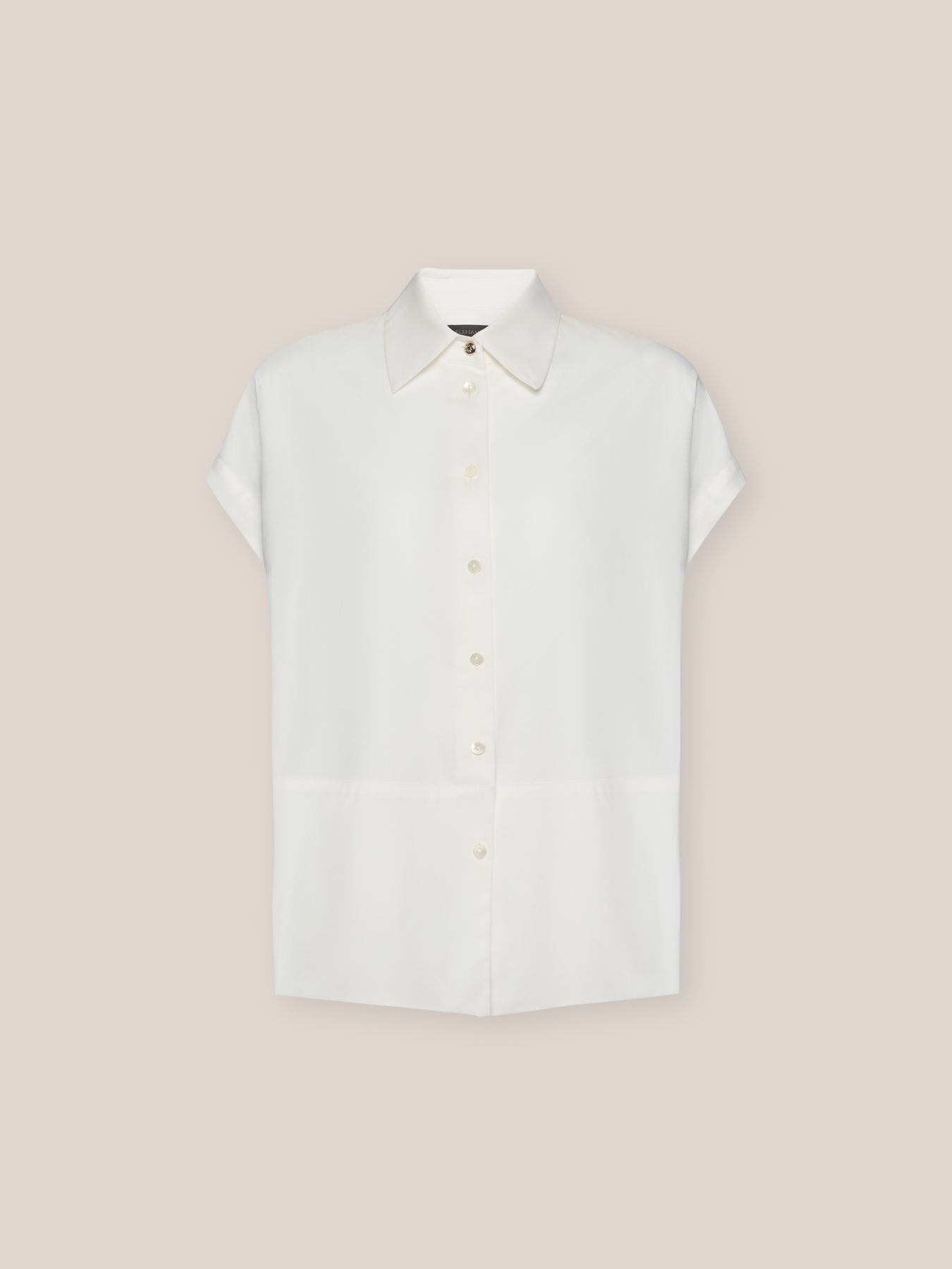 Блузка из эластичного хлопка свободного кроя с рукавами-кимоно. Классическое изделие для ярких весенних образов. Идеально сочетается с брюками из аналогичной ткани.