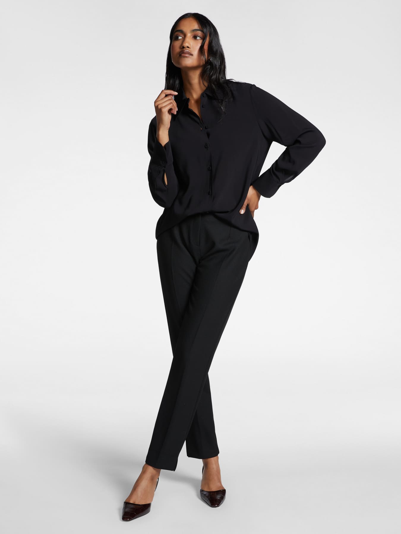 Рубашка из вискозы прямого кроя. Классический крой, идеально подходящий под любой образ. Современное и утонченное изделие.