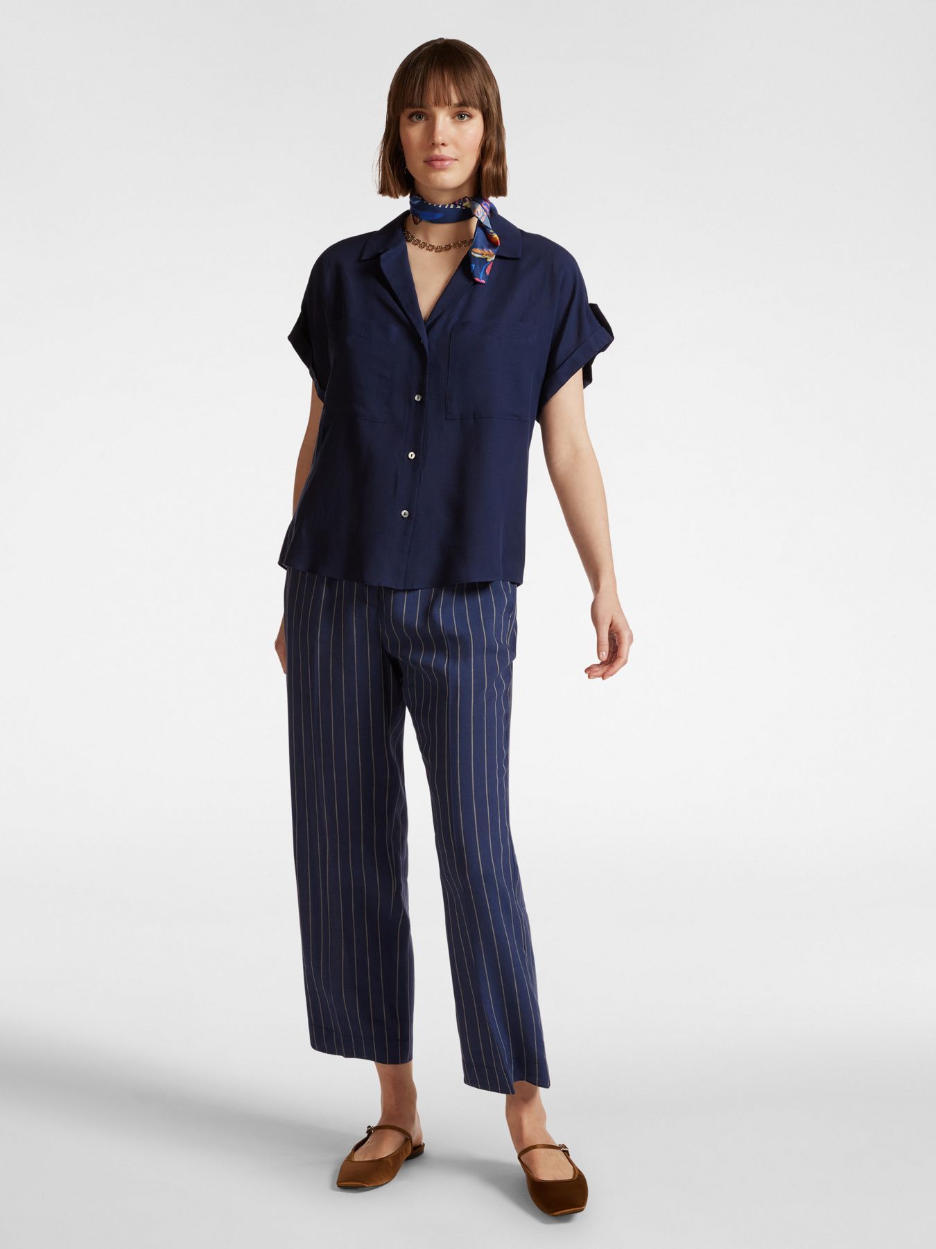 Блузка с короткими рукавами изо льна и лиоцелла. Пуговицы с монограммой, свободный крой. Идеально подходит для современного повседневного образа, в том числе в офис