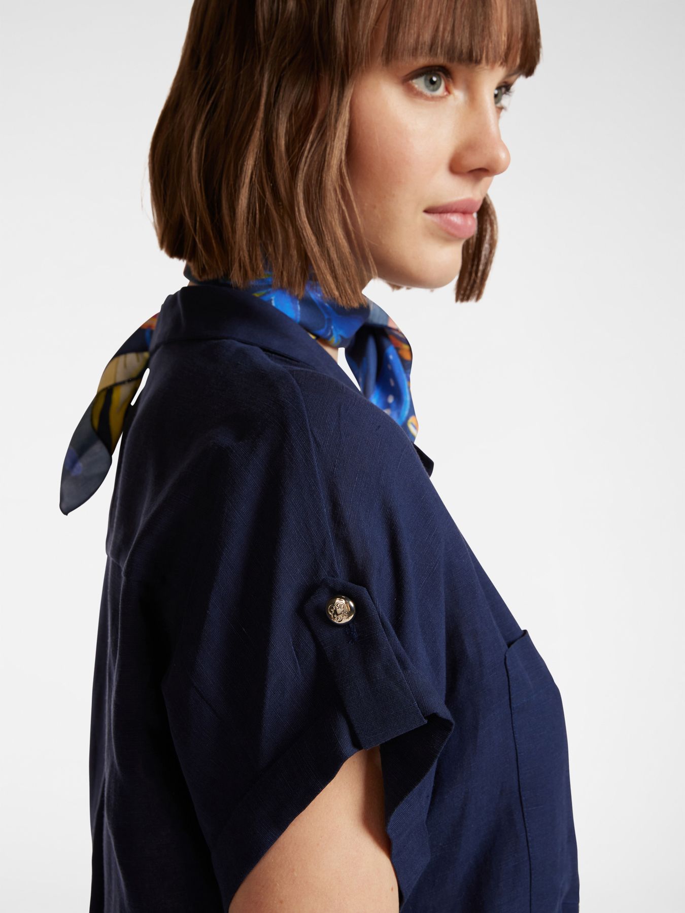 Блузка из льняного тенселя темно-синяя