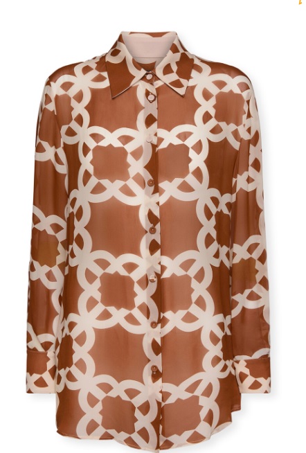Классическая рубашка мужского прямого кроя из эко-вискозного жоржета. Яркий принт с монограммой, контрастные детали, скрытые пуговицы. Изысканное изделие на каждый день.