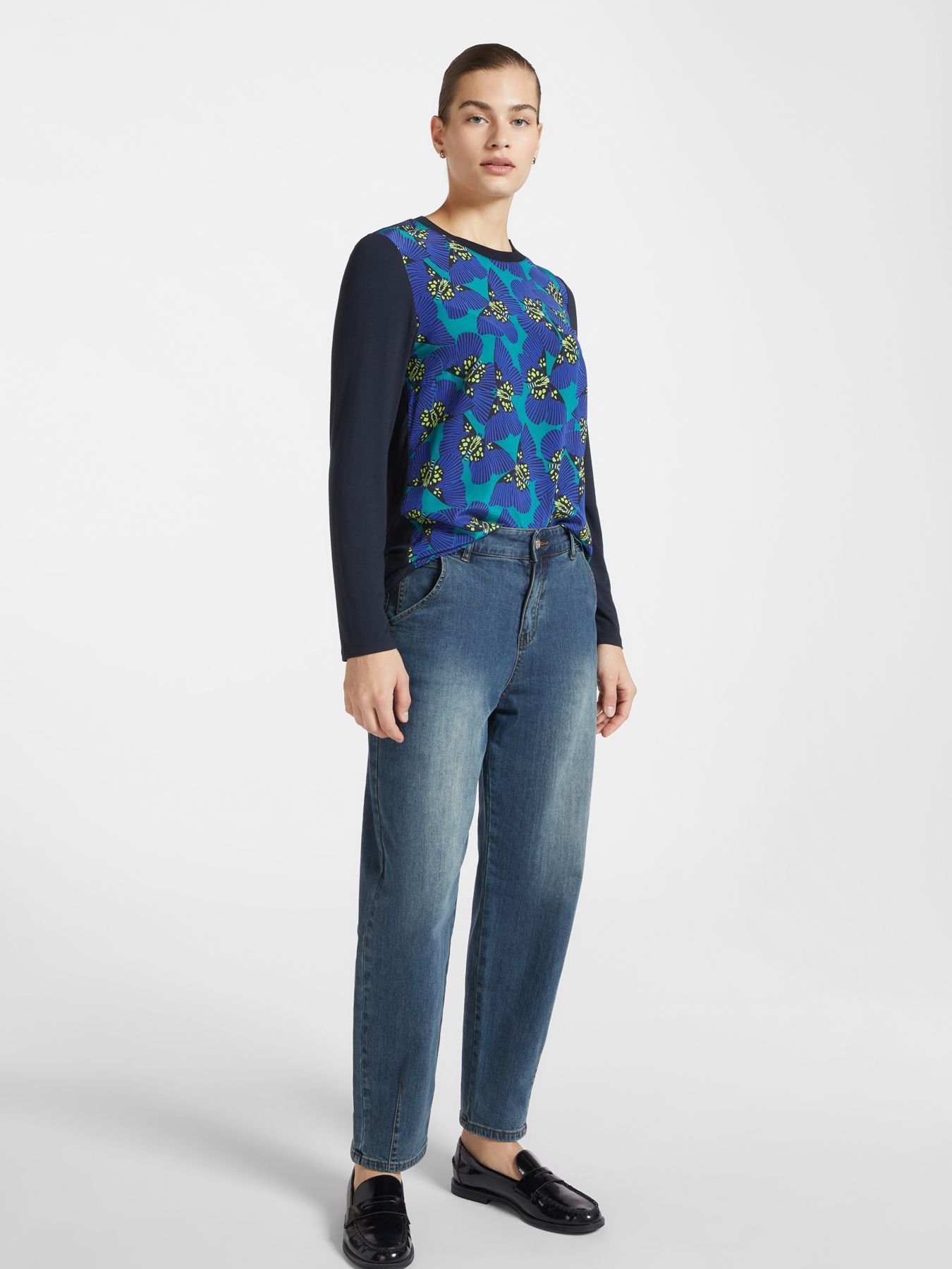 Блуза из эластичной вискозы темно-синяя