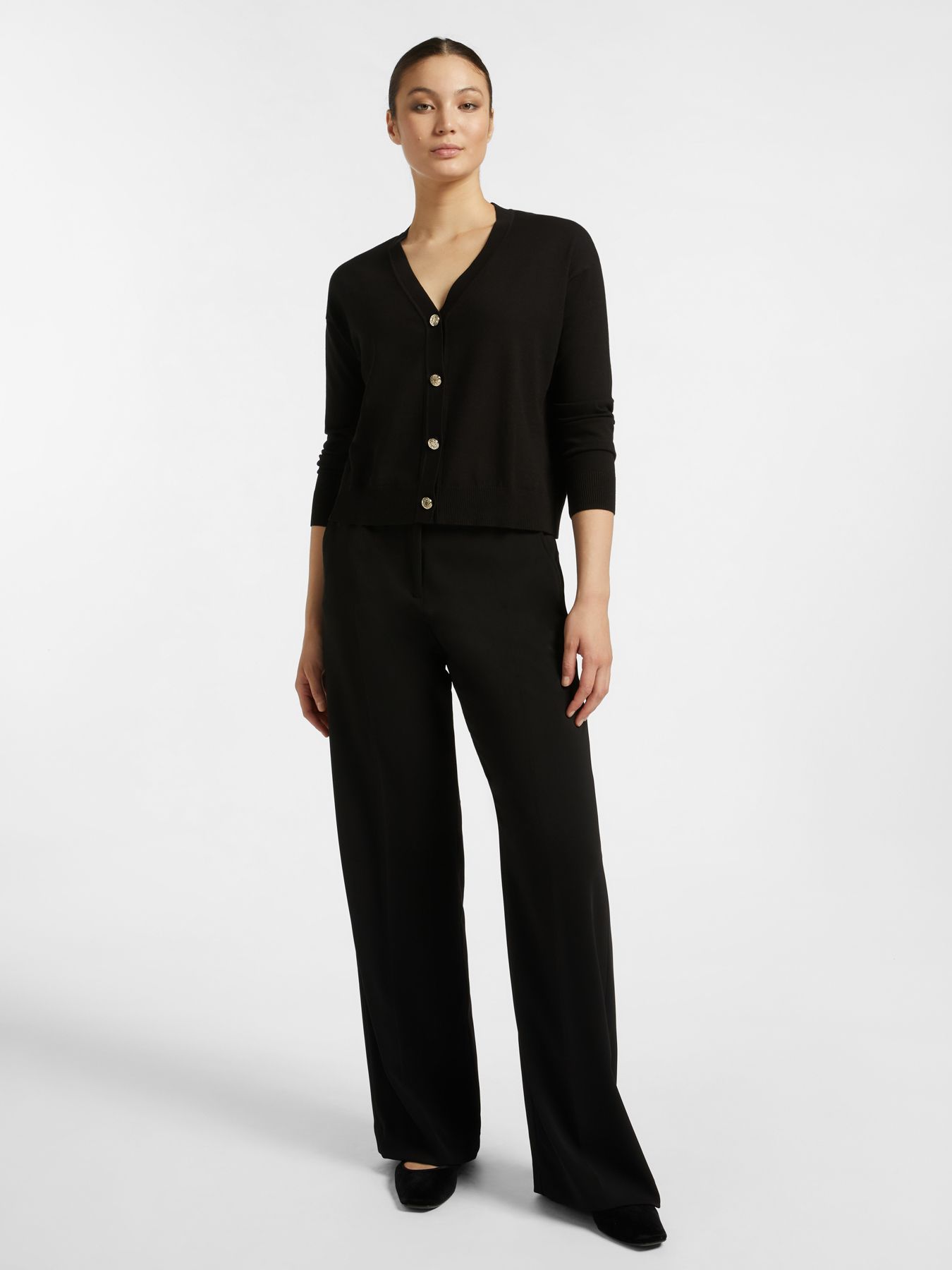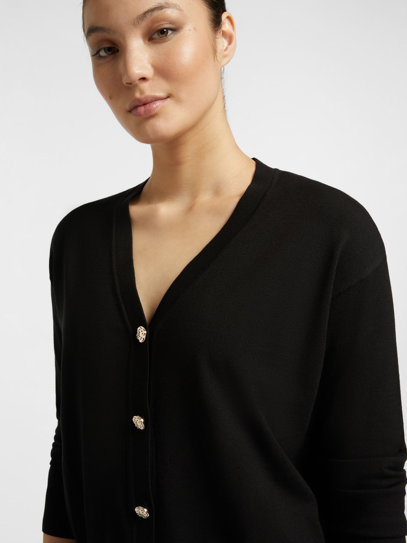 Укороченный кардиган приталенного кроя с V-образным вырезом. Новое прочтение базовой модели. Нежная вискоза в составе обеспечивает комфорт в носке.