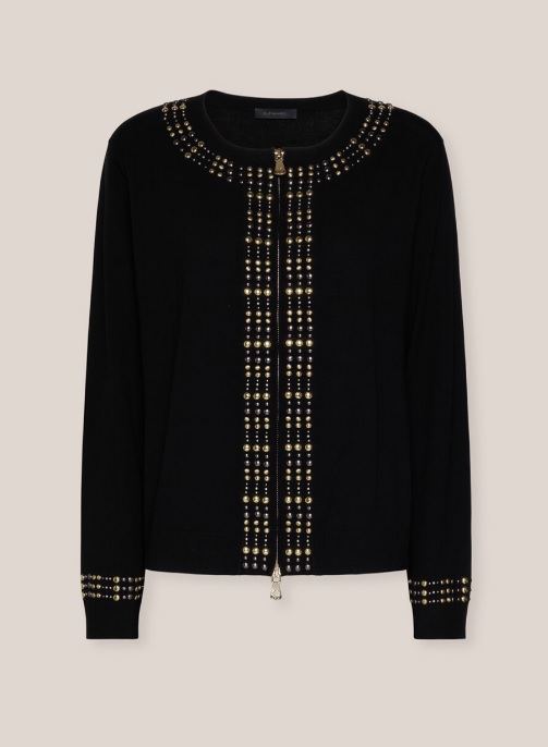 Укороченный кардиган с круглым вырезом из мягкой эко-вискозы. Застежка на молнию, аппликация горячей фиксации. Можно сочетать с бесшовной блузкой в комплекте для полноценного яркого образа.