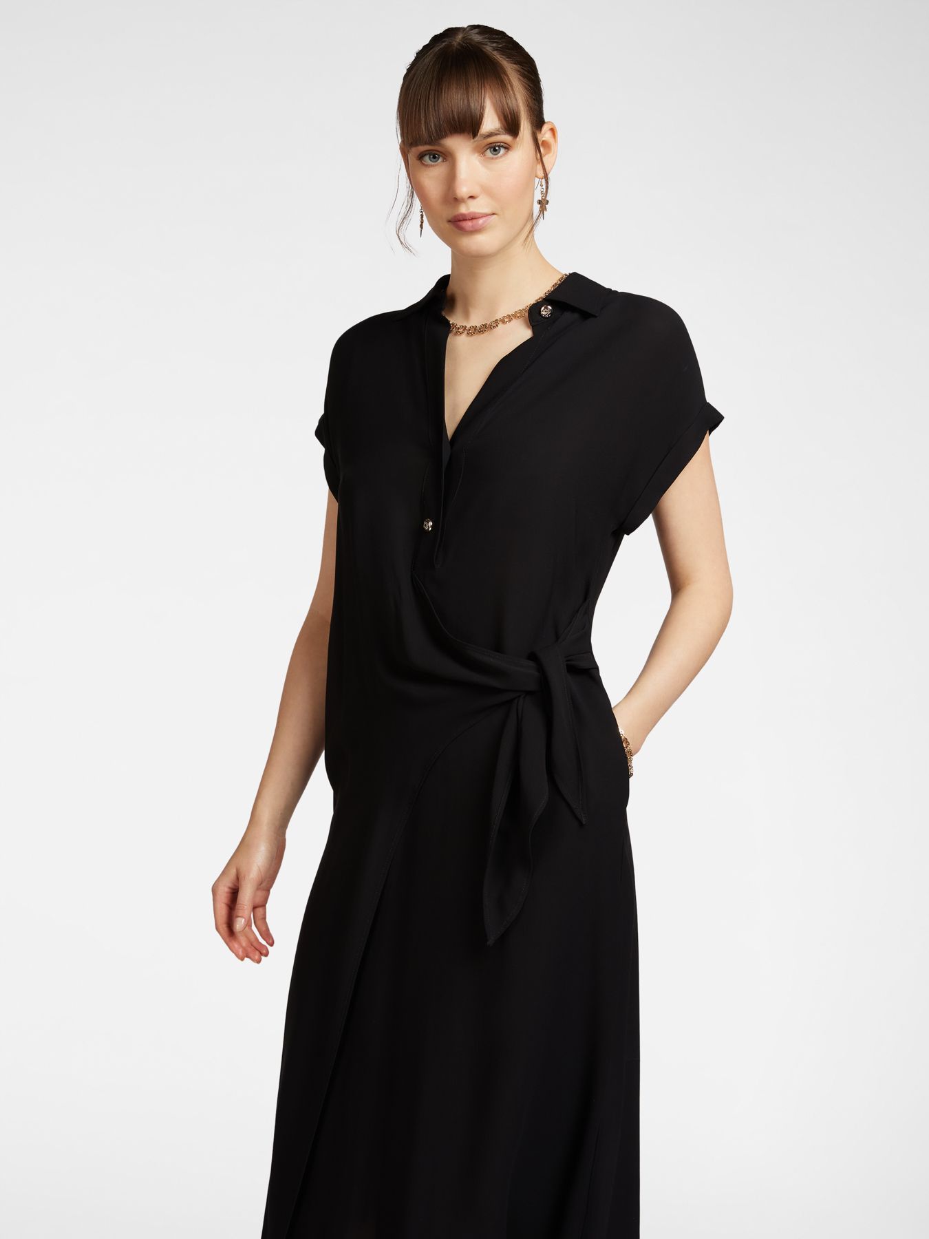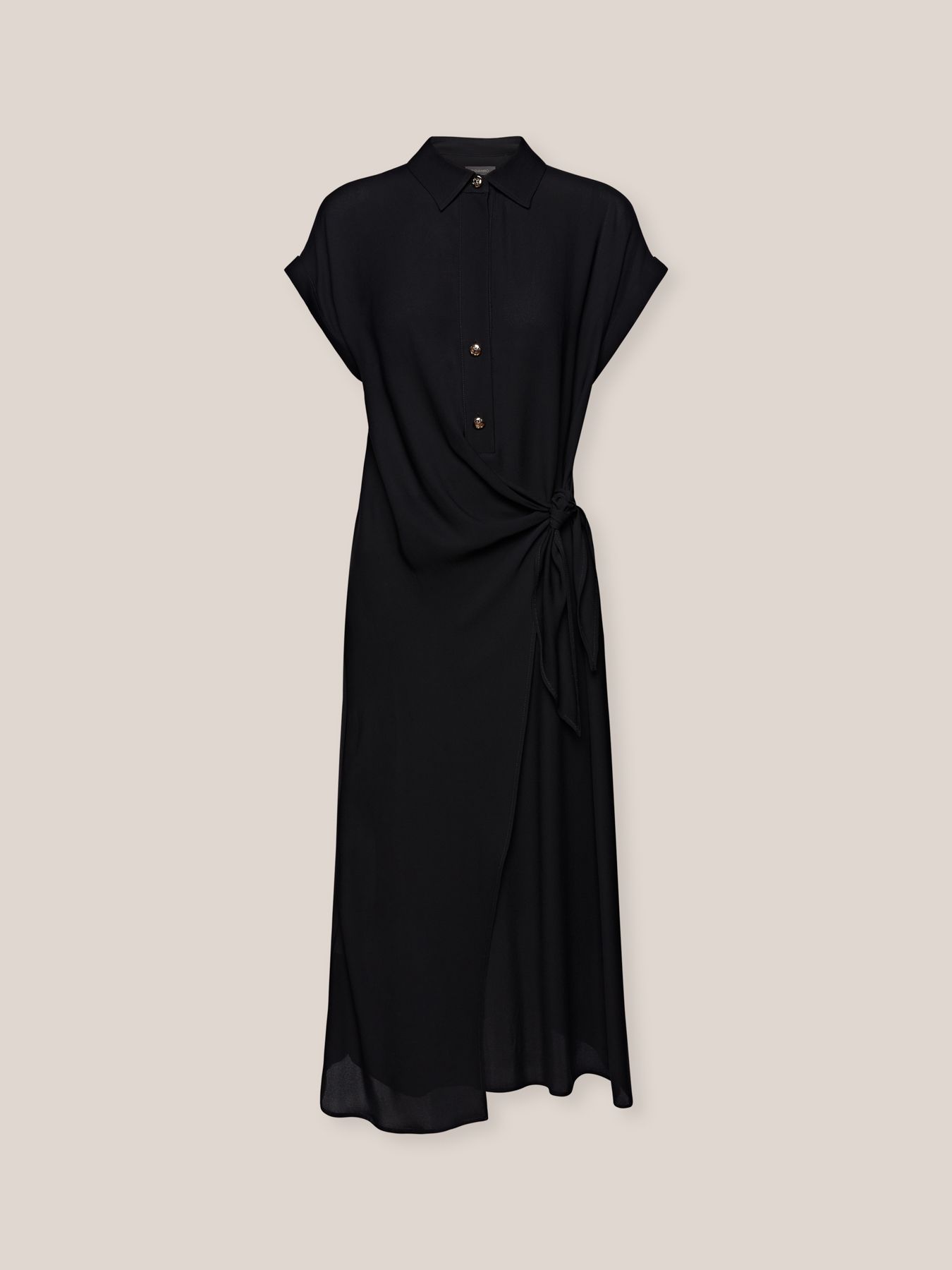 Изысканное платье-шемизье из 100% вискозы. Утонченный стиль, рукав кимоно, яркая деталь в виде узла. Универсальное изделие для вашего гардероба, идеально подходящее для весенних образов.