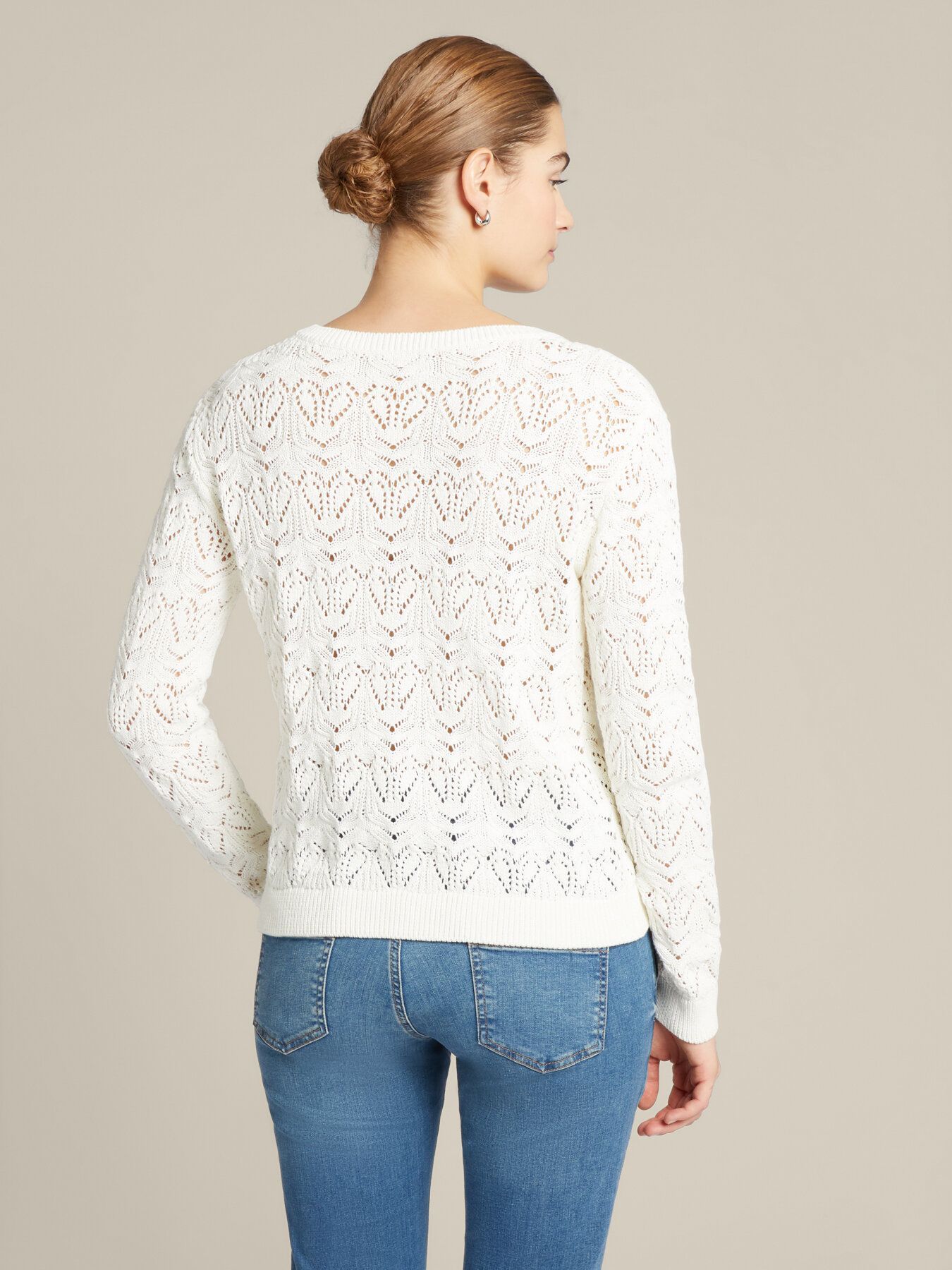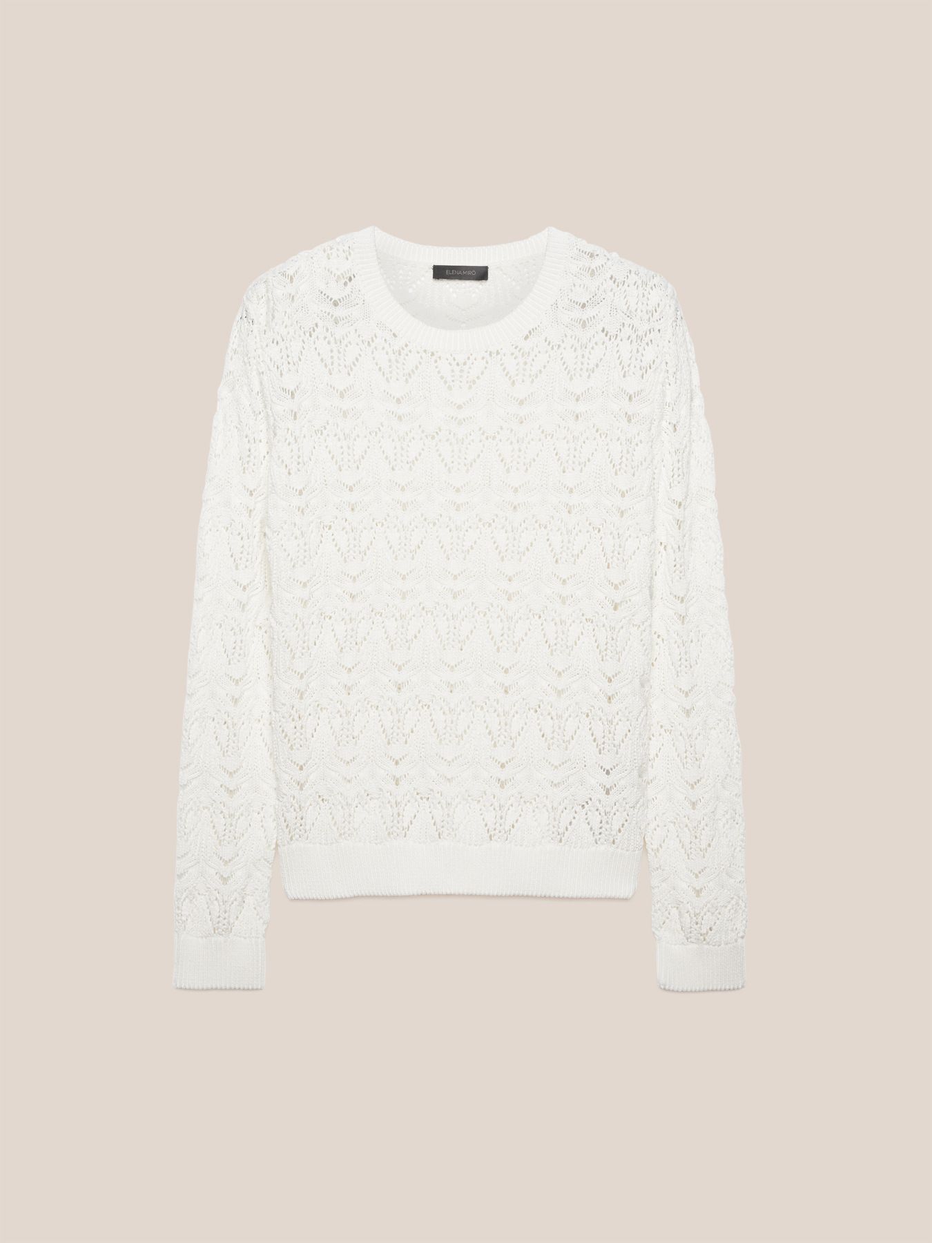 Женственный ажурный джемпер, выполненный в технике кроше. Облегающий силуэт, оригинальная вязка из крученого экологичного хлопка придают изделию трендовый спортивный вид. Размер на модели: 46 RUS (44 IT) Параметры модели: рост 178 см, грудь 92 см, талия 66 см, бедра 101 см.