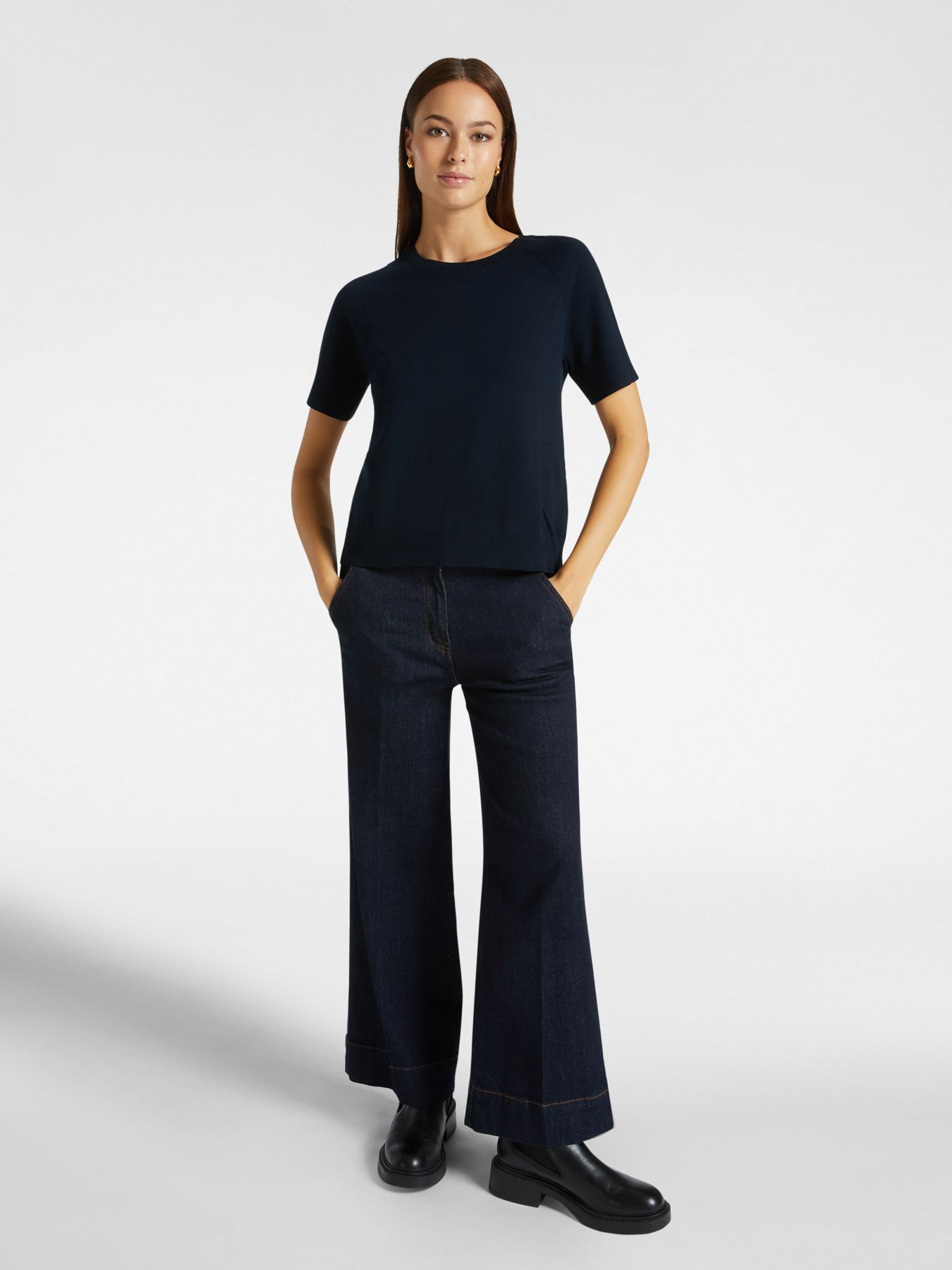 Джемпер прямого кроя с круглым вырезом и короткими рукавами. Базовая модель для любого гардероба. Приятный материал изделия, комфортная вискоза, обеспечит комфорт в носке.
