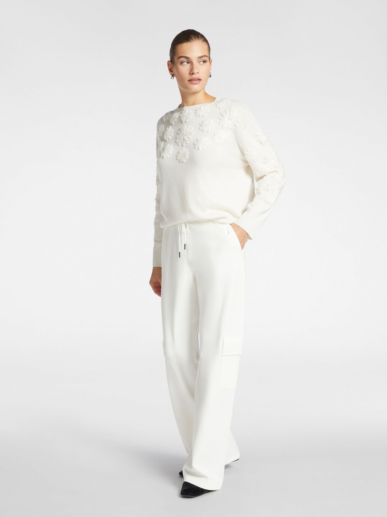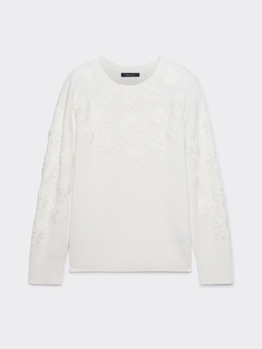 Джемпер прямого кроя из мягкой кашемировой пряжи. Вышитые вручную цветы выигрышно выделяют модель среди других трикотажных изделий, добавляя женственность любому образу.