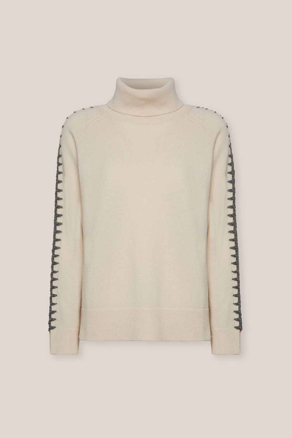 Свитер прямого кроя из 100% сертифицированной шерсти RWS. Рукава реглан с ручной контрастной вышивкой по центру. Изысканное трикотажное изделие для теплых зимних образов.