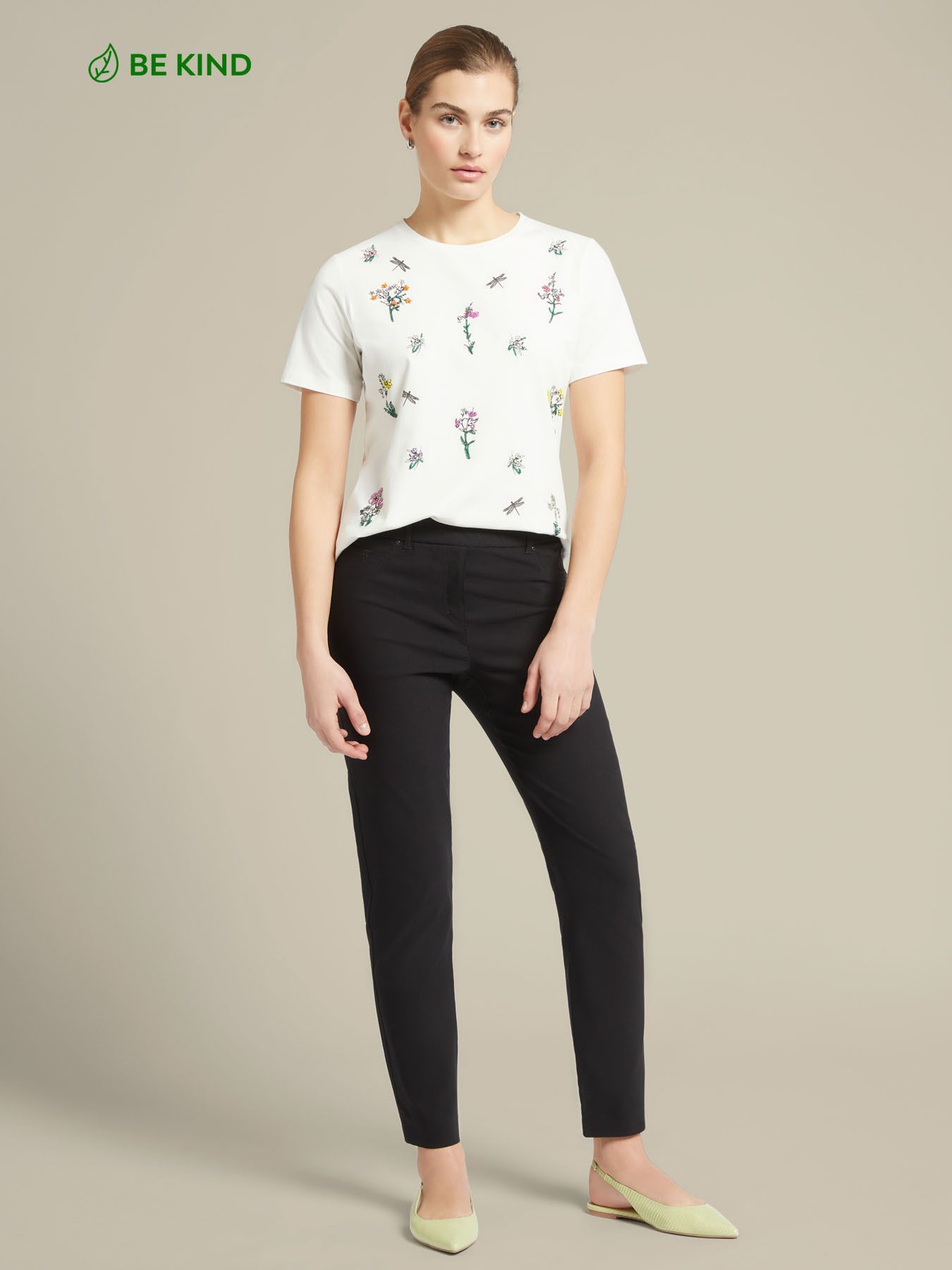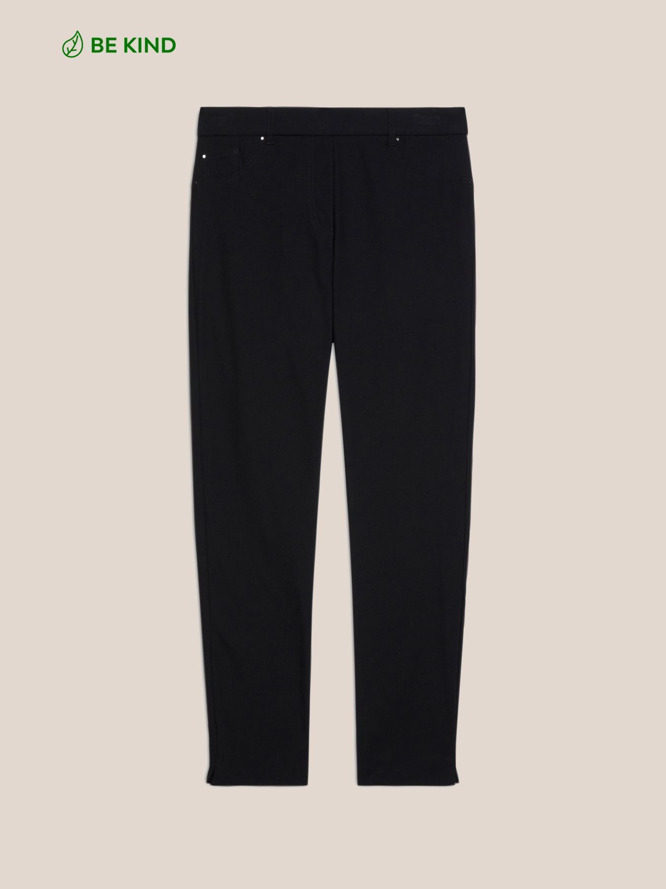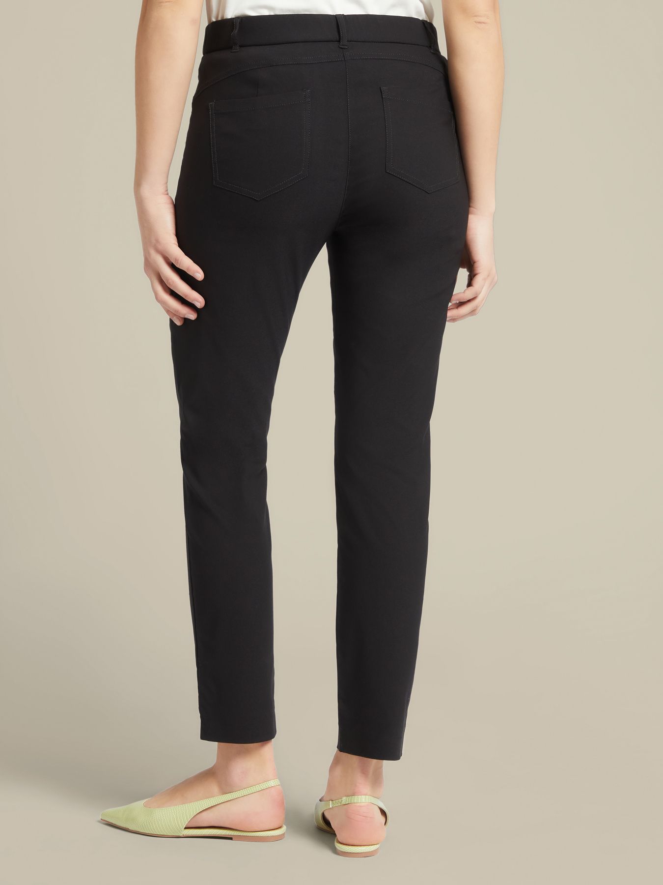 Комфортные джеггинсы из вискозы. Эластичный пояс, зауженный крой, косые карманы, модель без застёжек. Размер на модели: 46 RUS (44 IT) Параметры модели: рост 178 см, грудь 92 см, талия 66 см, бедра 101 см.