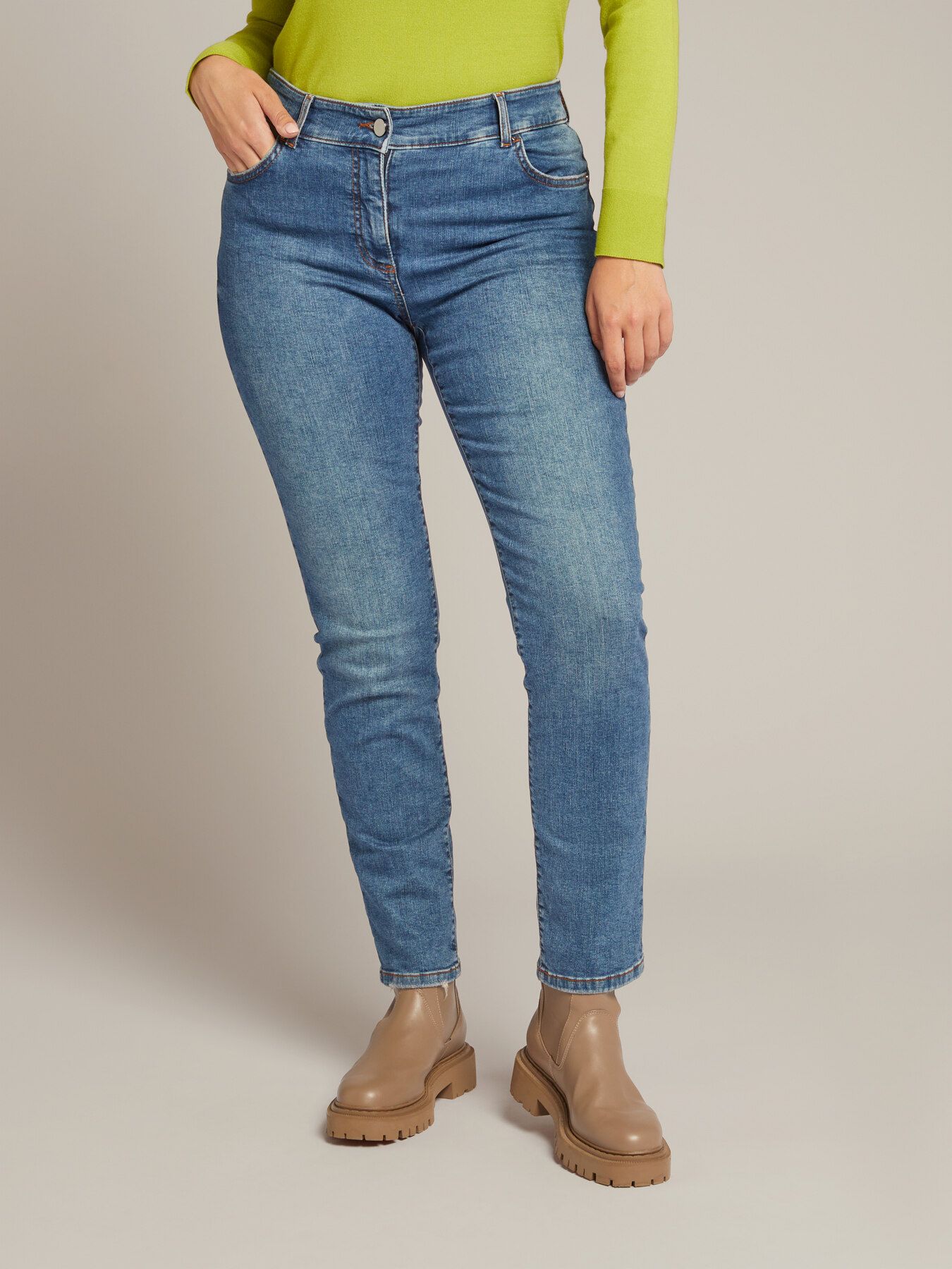 Стильные джинсы из эластичного хлопка укороченной длины до щиколотки. Стандартная линия талии, комфортная посадка, застегивается на потайную молнию и пуговицу.