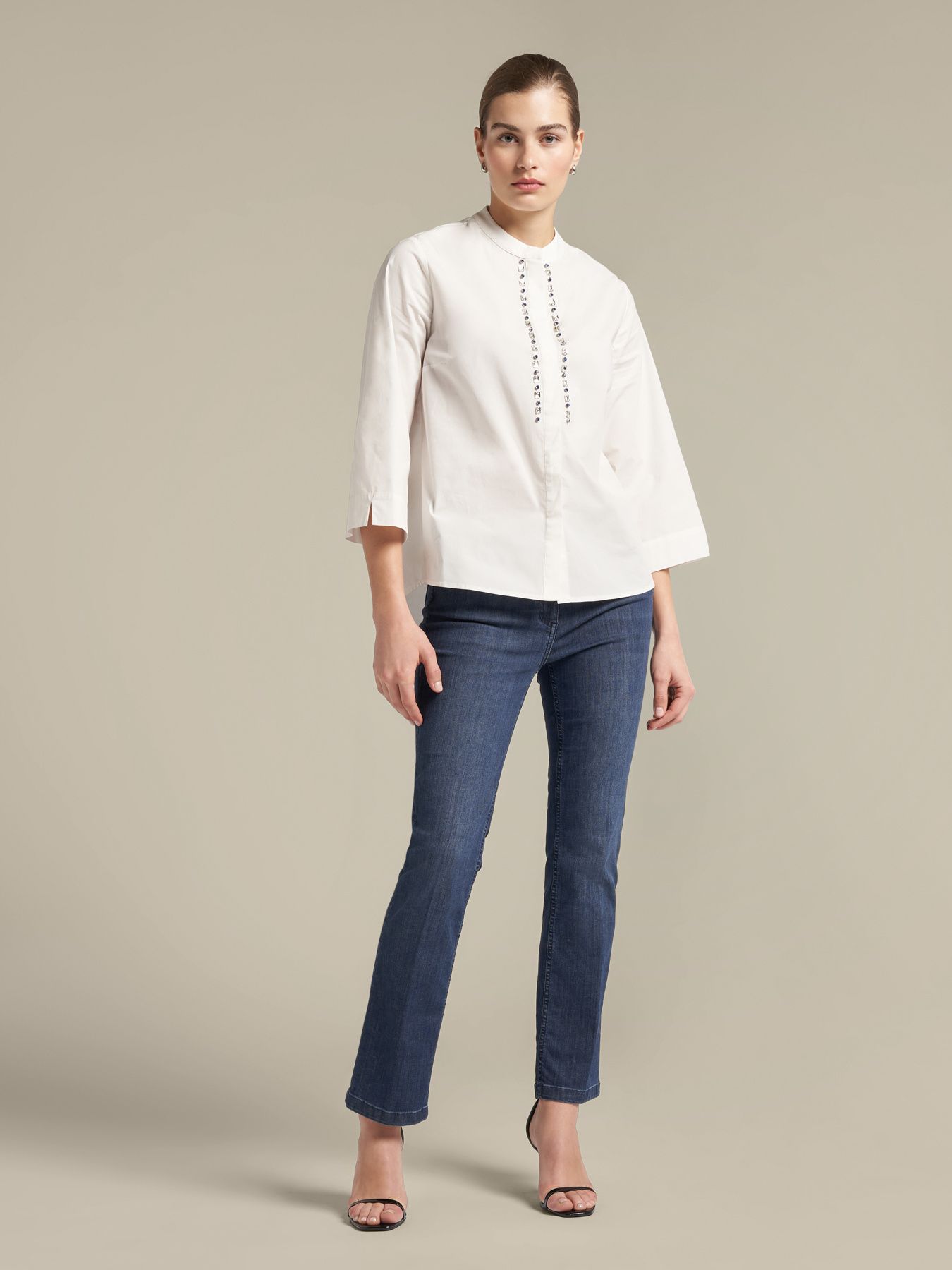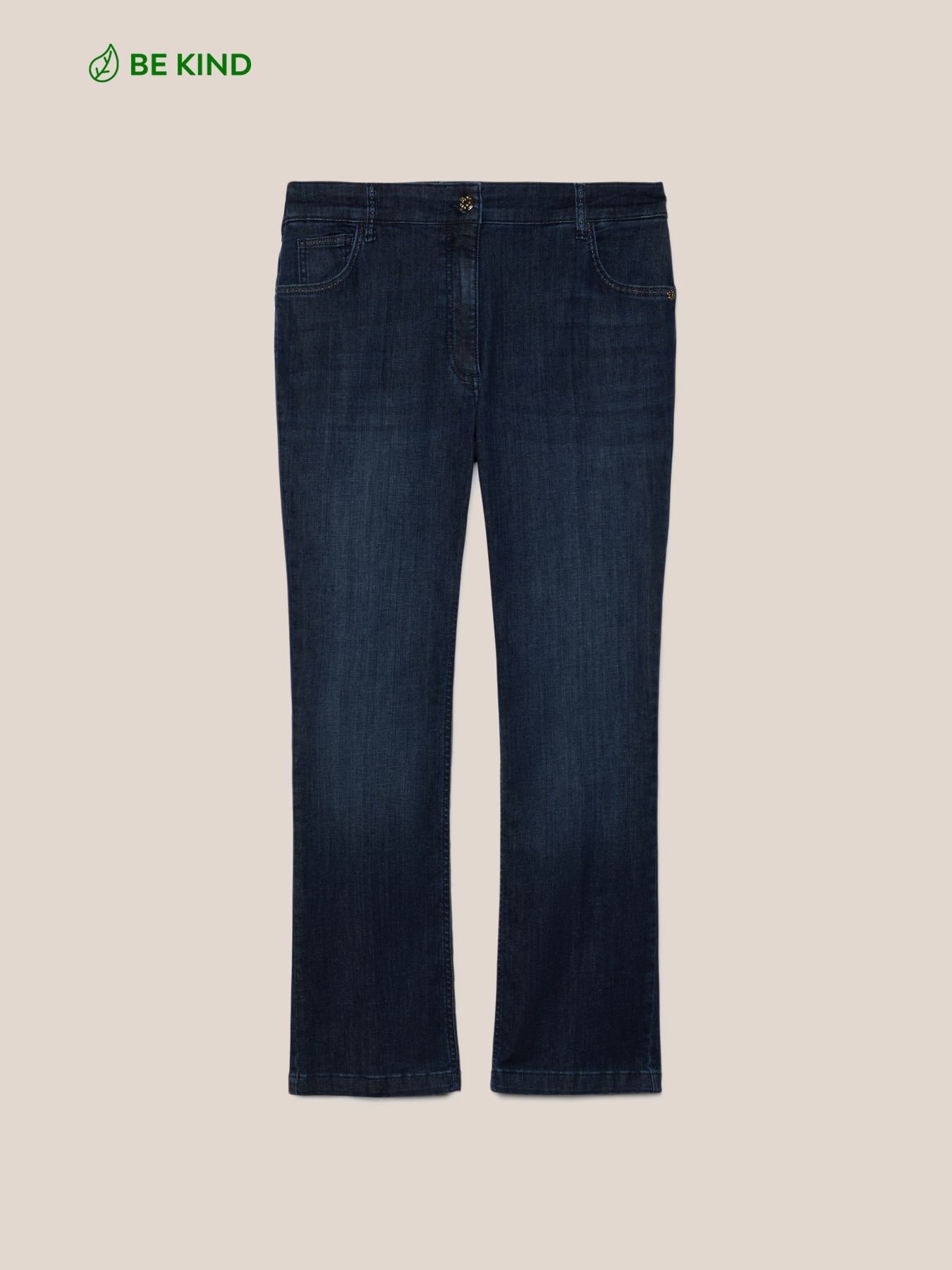 Джинсы из эластичного органического хлопка, прекрасно подчеркивающие фигуру. Облегающая бедра модель, слегка расклешенная от колена. Стандартная линия талии, косые карманы, крой пуш-ап, средняя степень потертости делают их идеальным вариантом для повседневной носки.