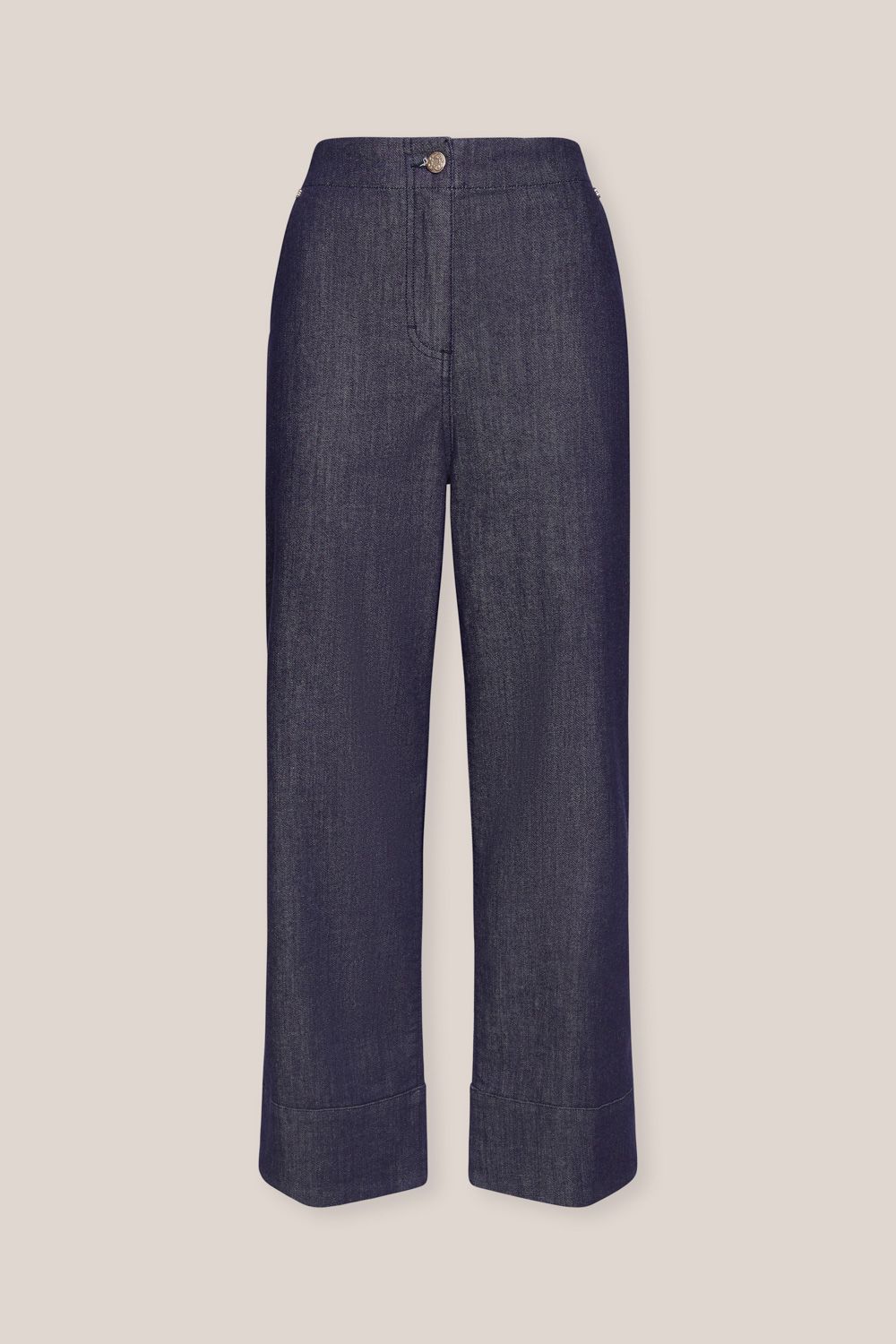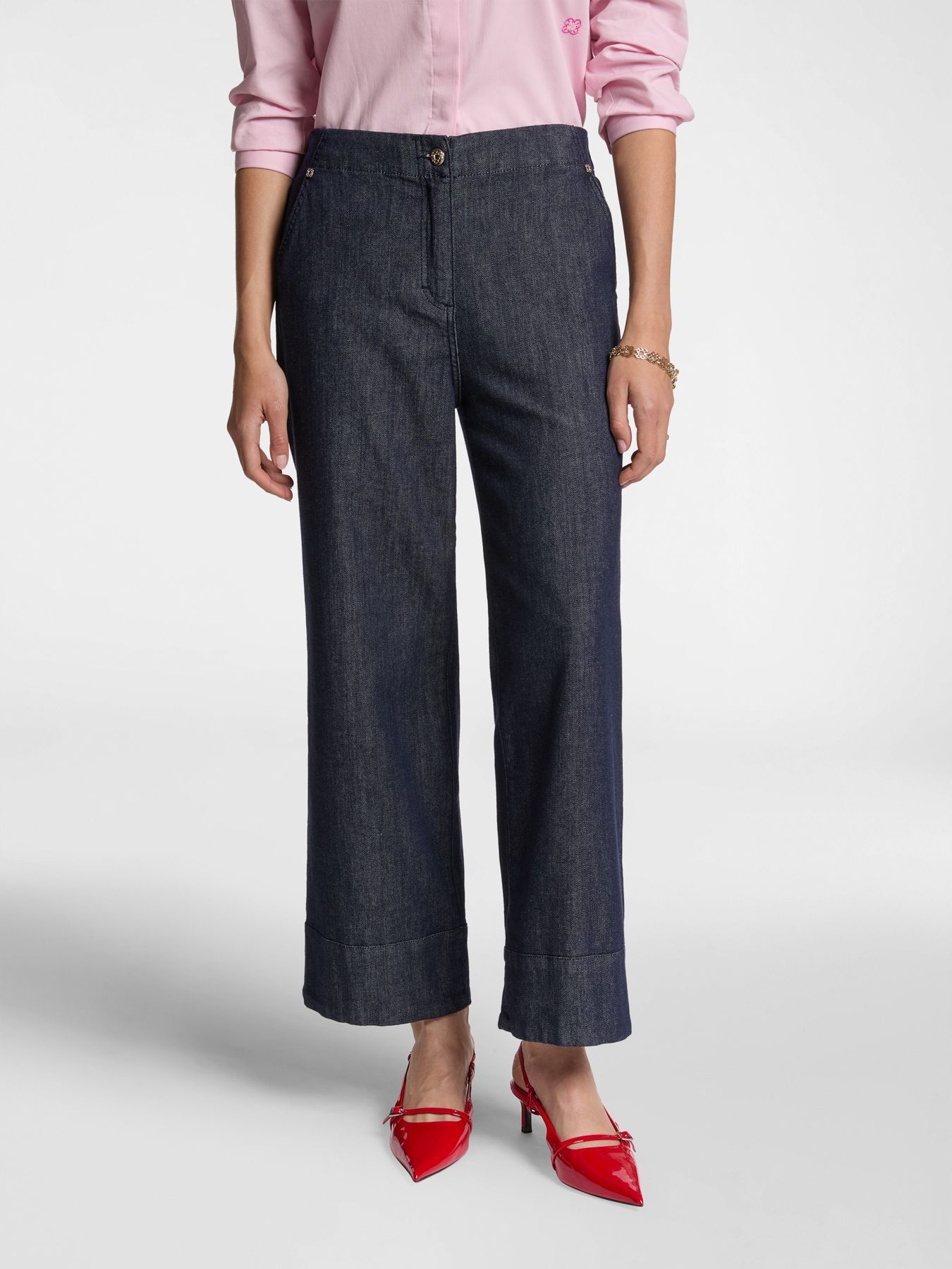 Укороченные джинсы из эластичного денима. Невыстиранный вид, косые карманы, высокая посадка. Универсальная модель на все случаи жизни.