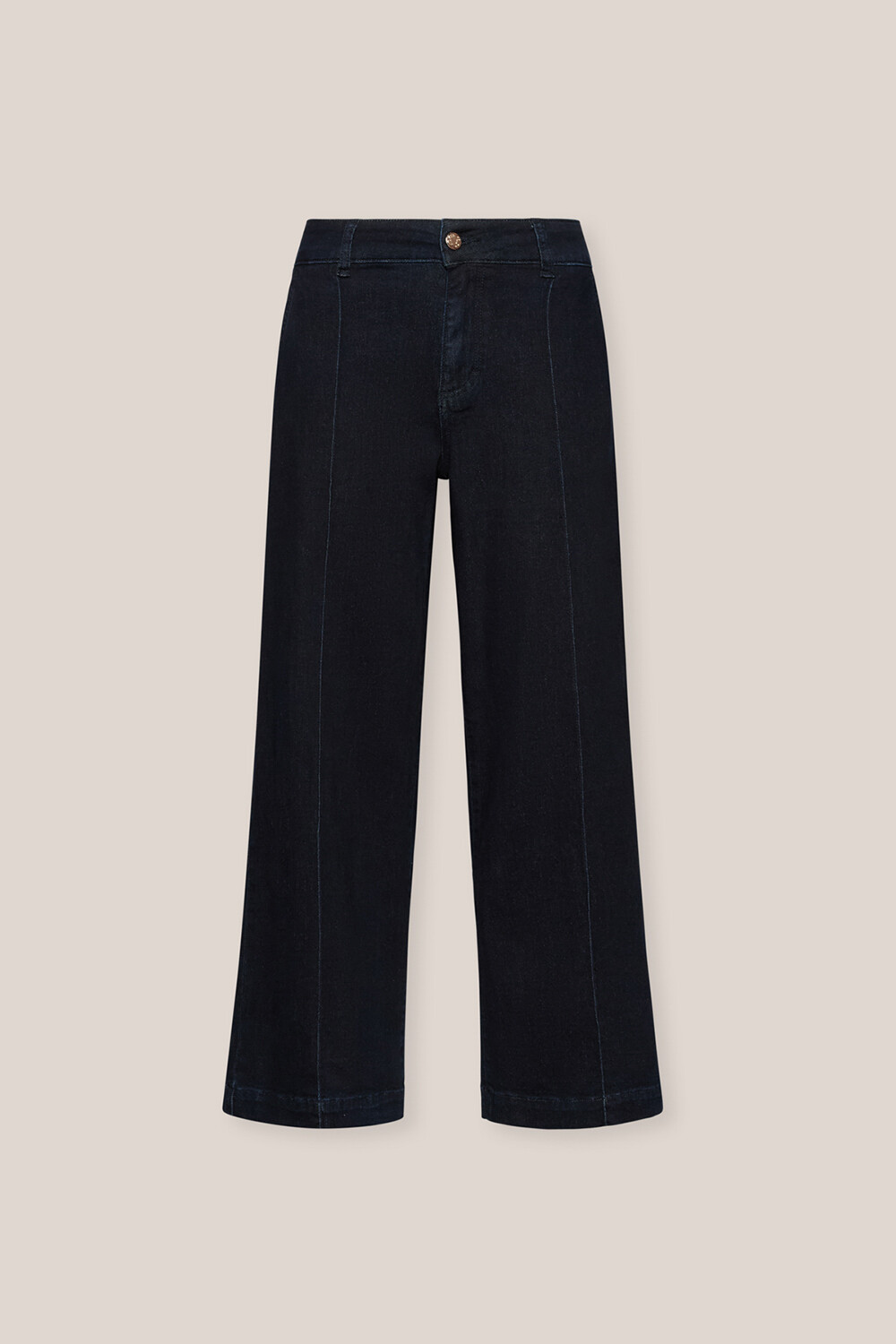Укороченные джинсы Мэри из эластичного денима Пауэр стреч. Темно-синий «чистый» цвет, косые карманы. Изделие украшено небольшой деталью в виде вышитой монограммы на заднем кармане. Идеальный вариант для повседневных образов.