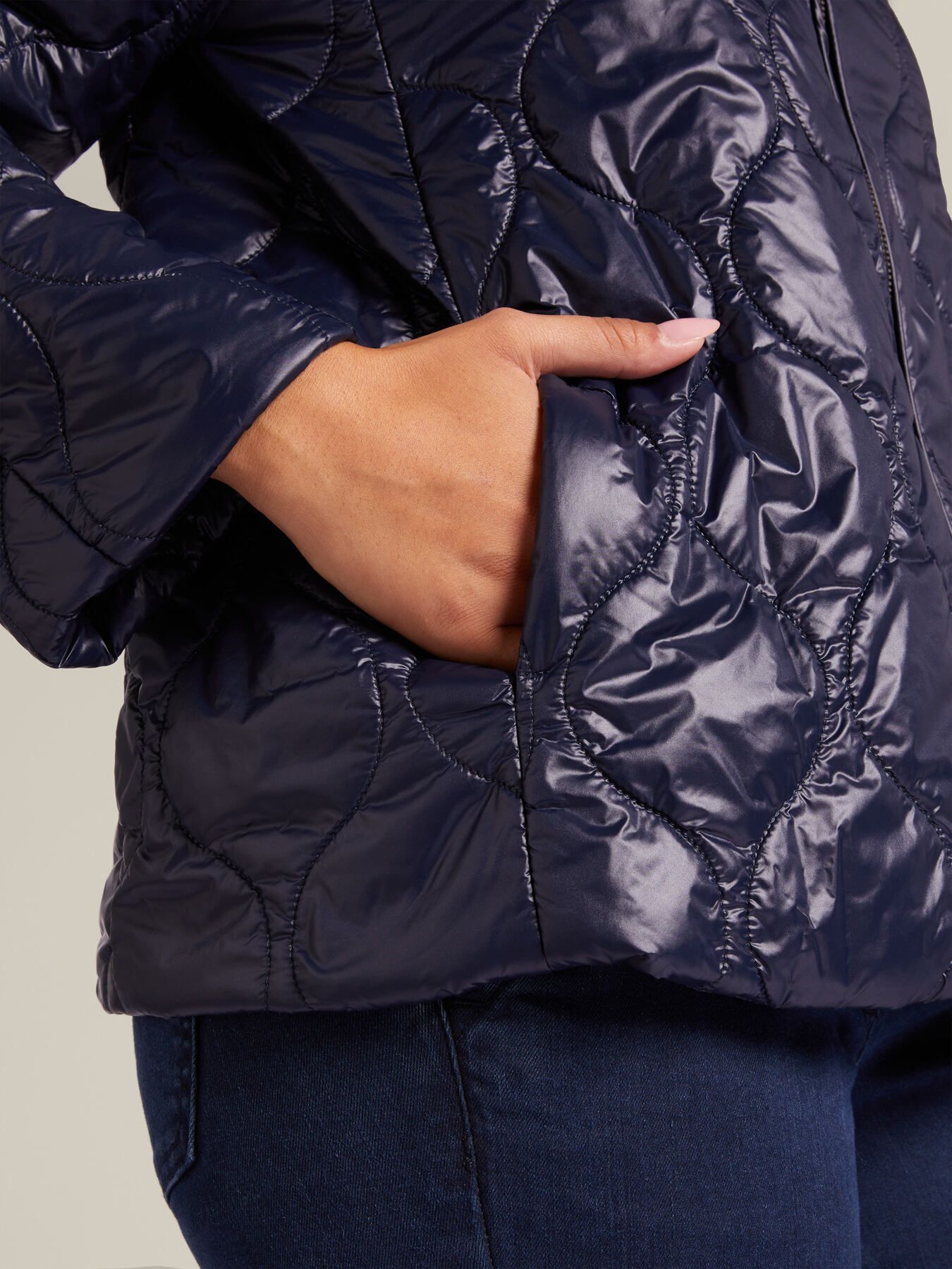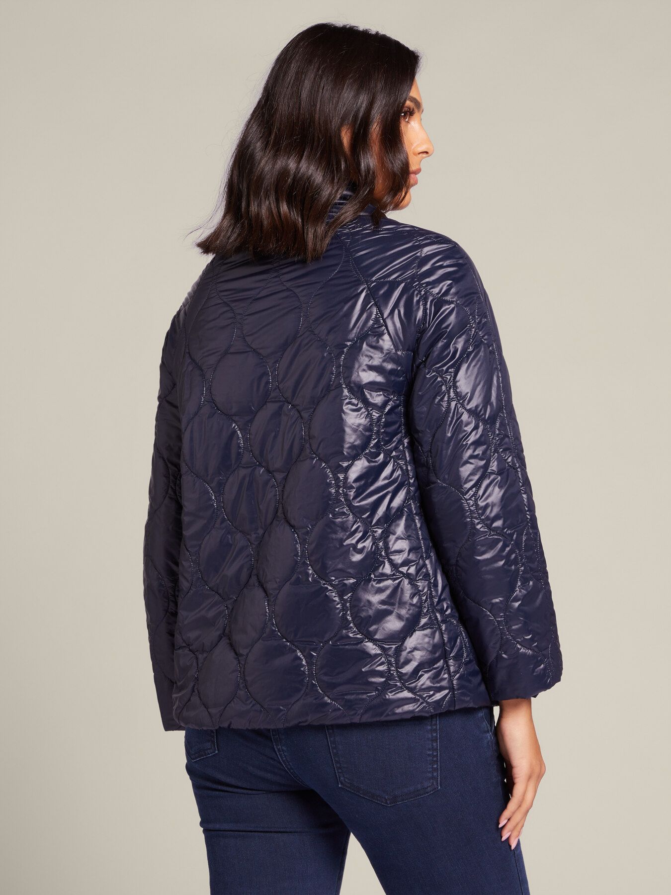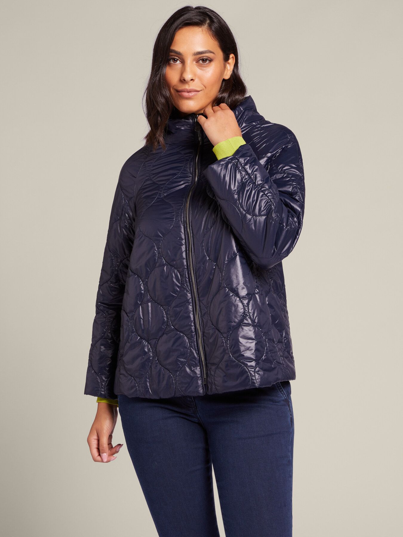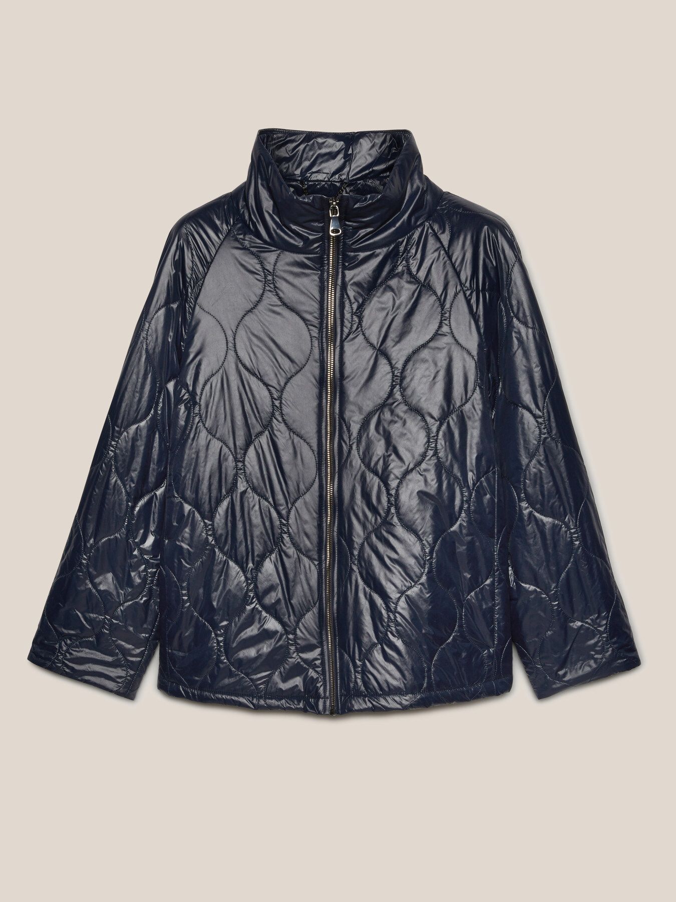 Стильная стеганая куртка с подкладом из смесового кашемира. Слегка расклешенный силуэт, рукава кроя реглан, застегивается на молнию с двойным ползунком и вшивными карманами по бокам изделия.