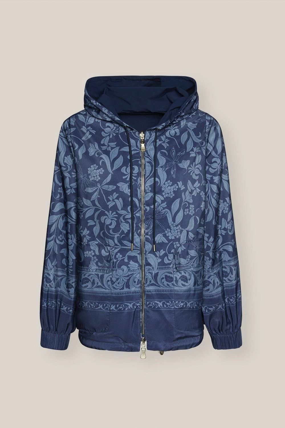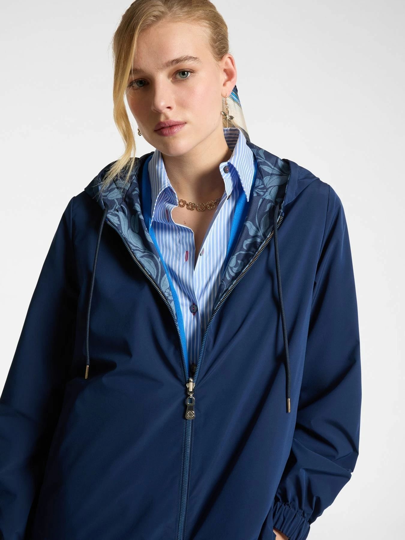 Двусторонняя ветровка из водонепроницаемой ткани, внешняя часть с принтом, внутренняя - однотонная. Спортивный шик на каждый день.