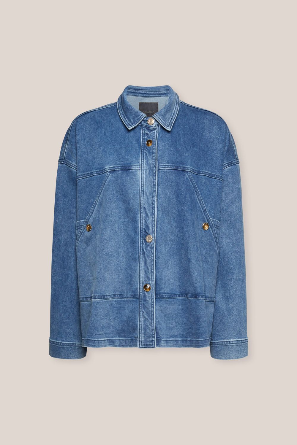 Джинсовая куртка – это мастхэв в любом гардеробе. Изделие имеет оригинальный дизайн с застежками поочередности пуговицами и кнопками. Свободный фасон и молнии на рукавах придают изделию характер. Спущенная линия плеча добавляет образу расслабленного настроения.