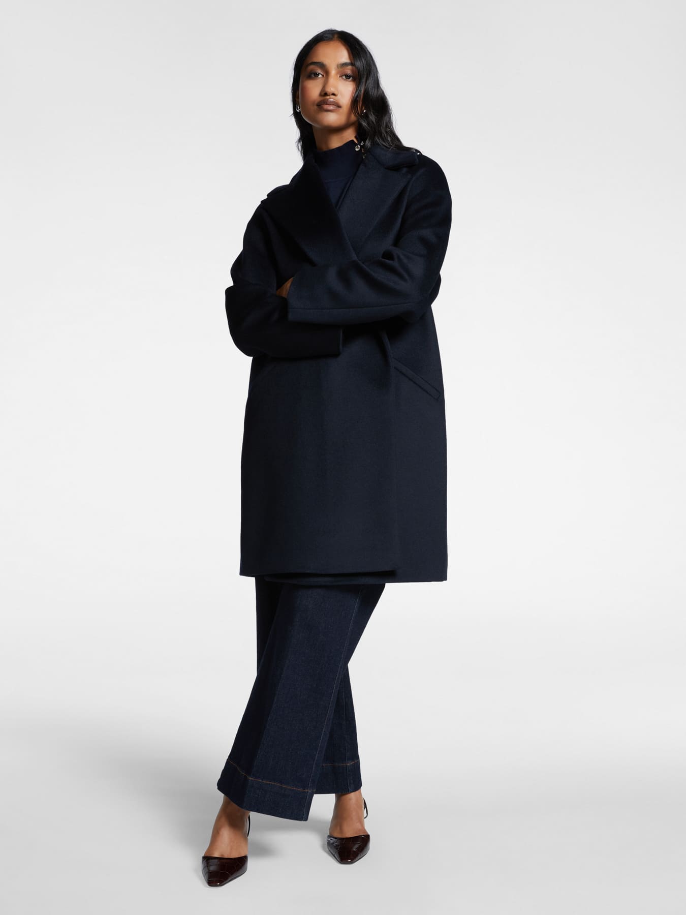 Короткое пальто из шерсти. Современный крой, непринужденный стиль. Воротник с лацканами и втачные карманы. Идеальное изделие для осенних образов.