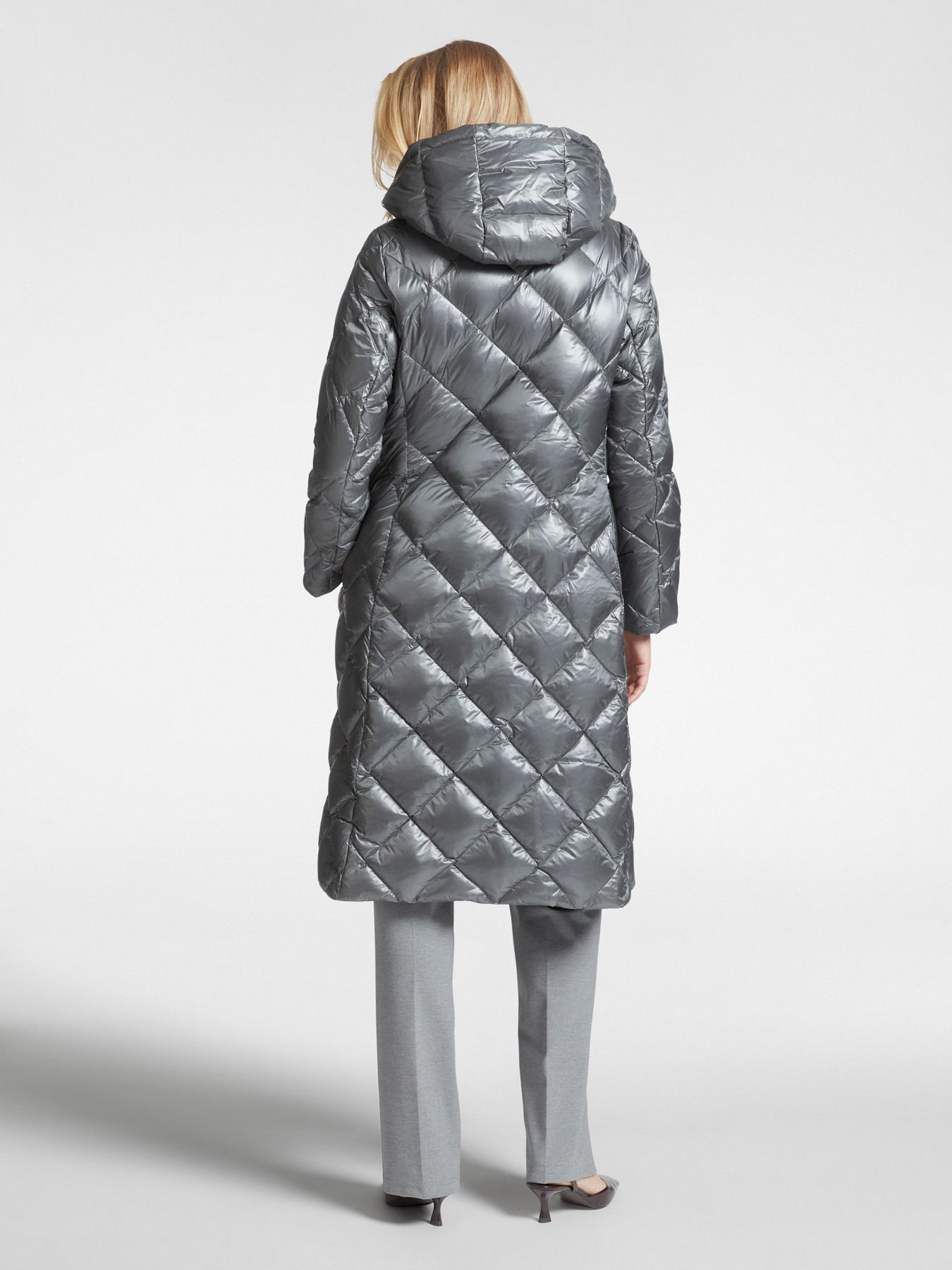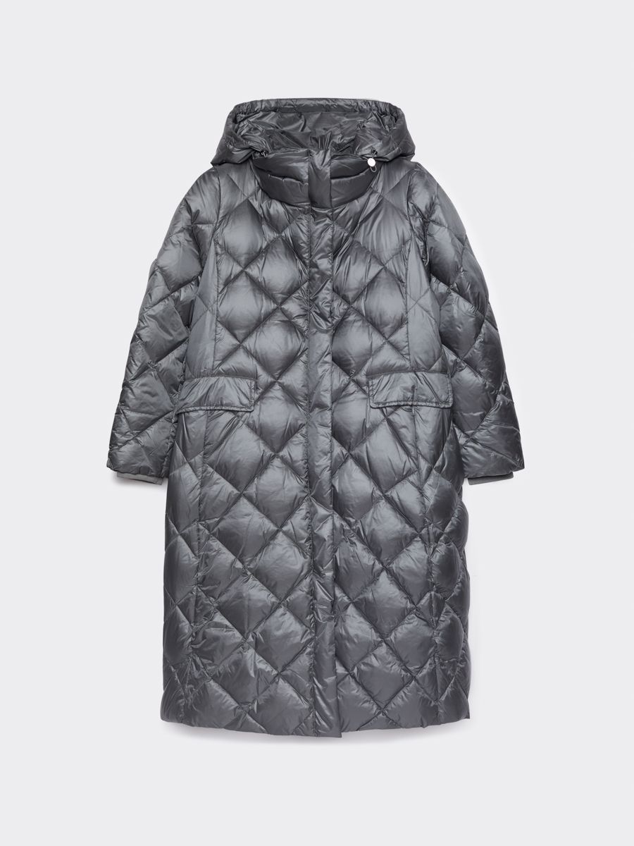 Удлиненный пуховик прямого кроя. Идеальное сочетание комфортного кроя и интересного дизайна с ромбовидной стежкой.