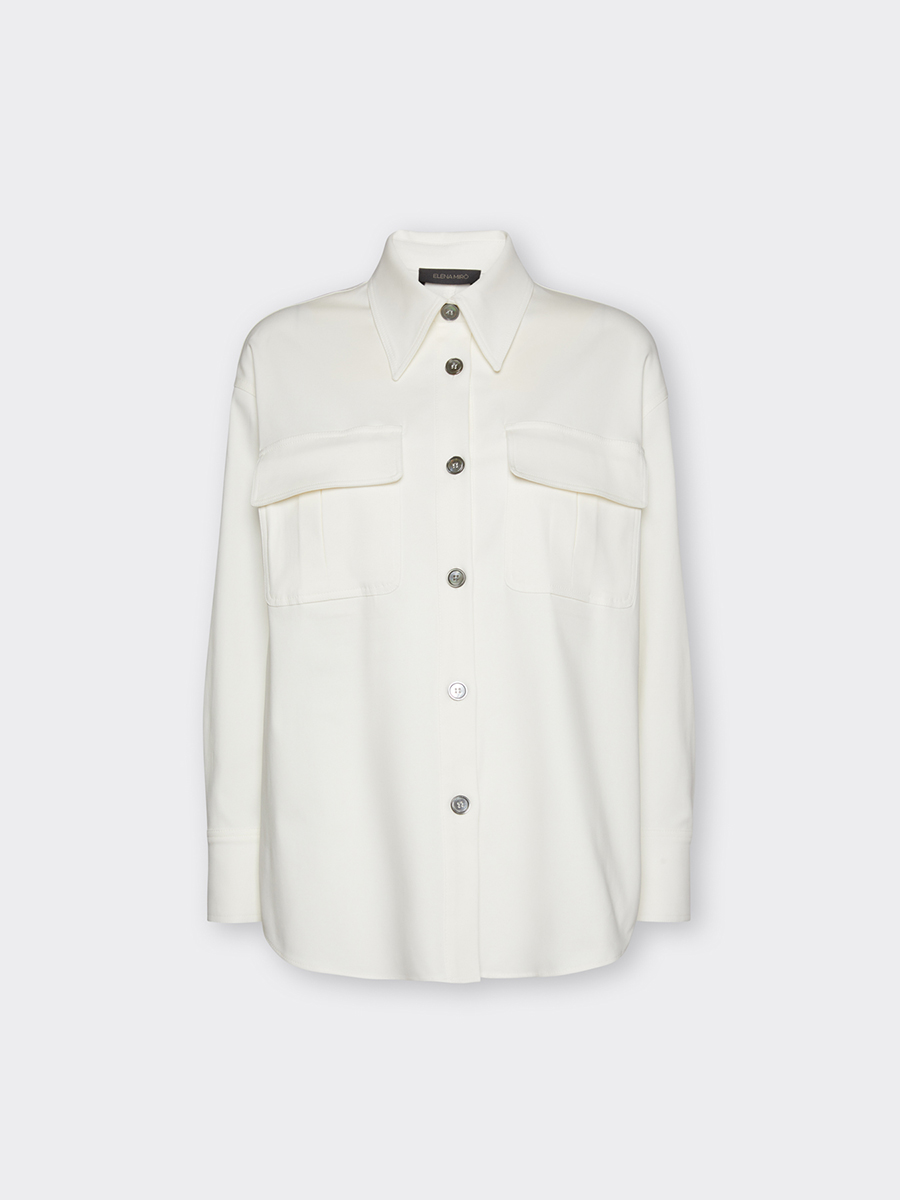 Рубашка свободного кроя из эластичного габардина, сочетающего преимущества хлопка и лиоцелла. Накладные карманы клапаны, контрастные перламутровые пуговицы. Изделие может стать прекрасным дополнением к многослойным образам. Прекрасно сочетается с брюками в комплекте.
