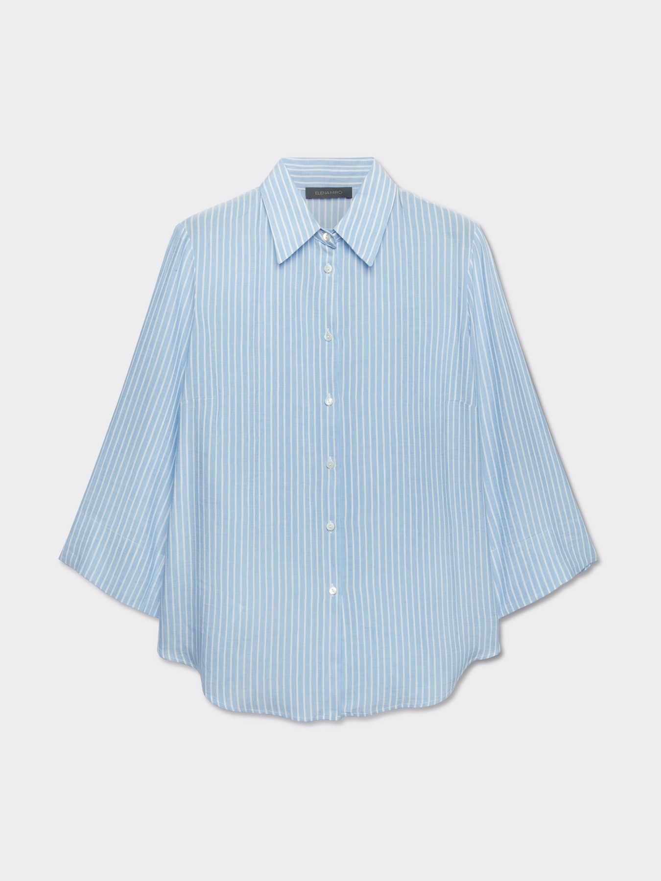 Необходимая вещь в женском гардеробе: базовая рубашка в полоску из льняной пряжи. Актуальный мужской крой, деликатная полоска - подходит как для офисных, так и для повседневных образов.