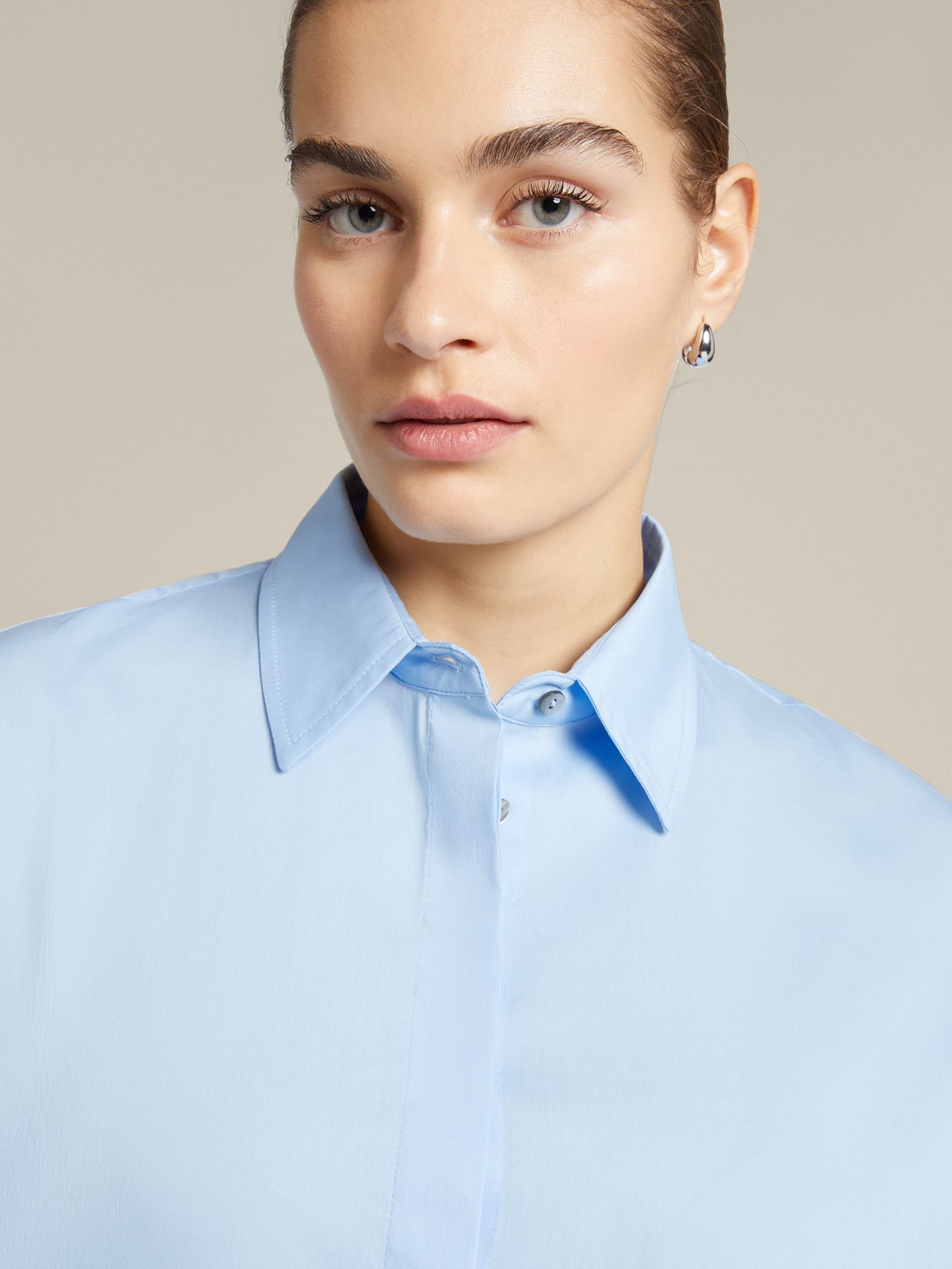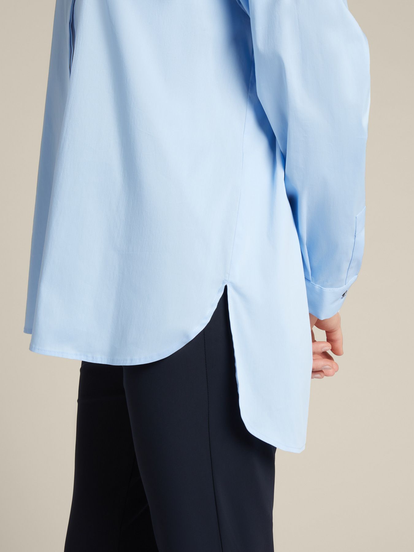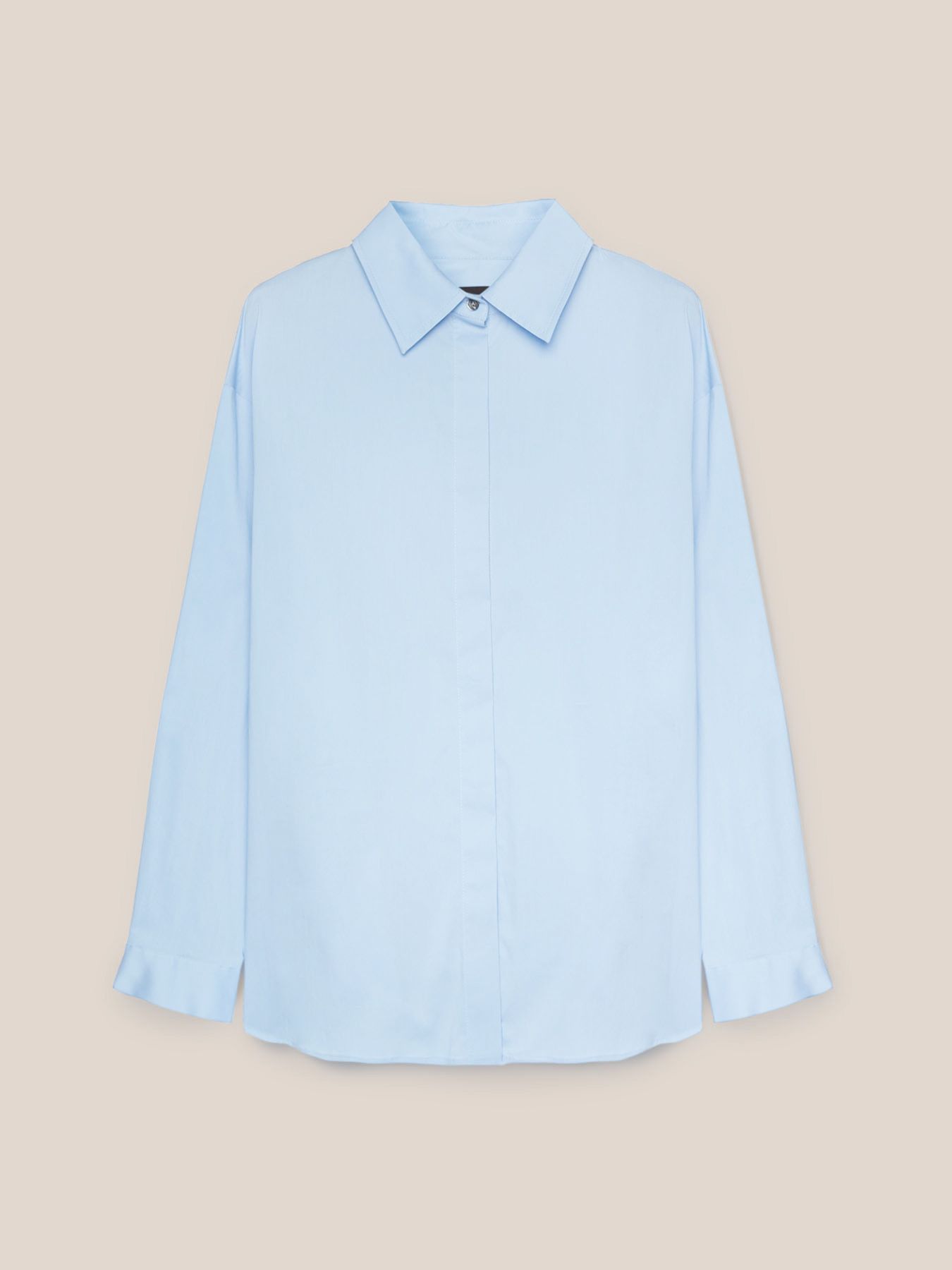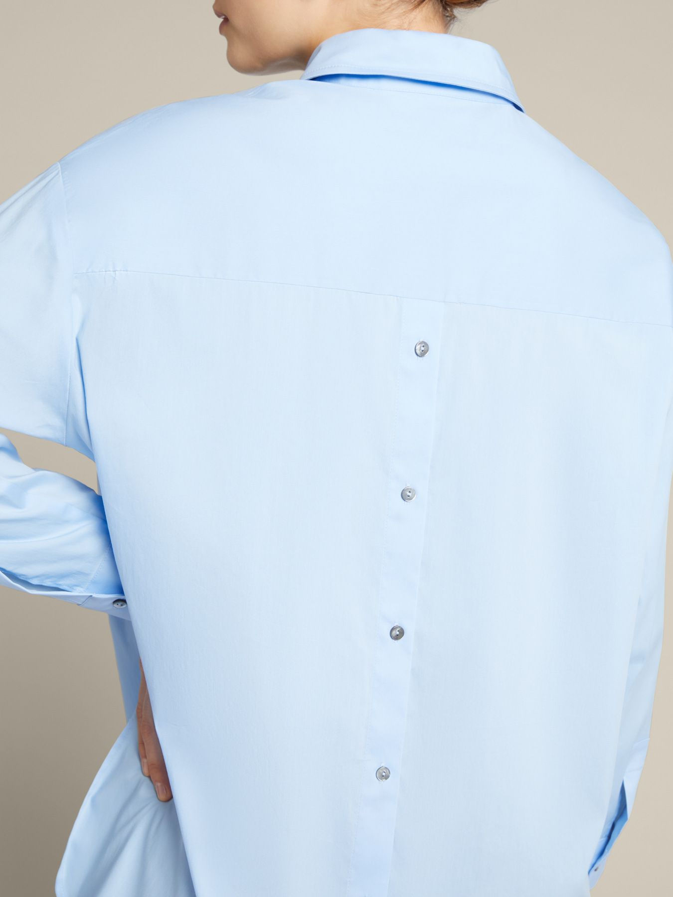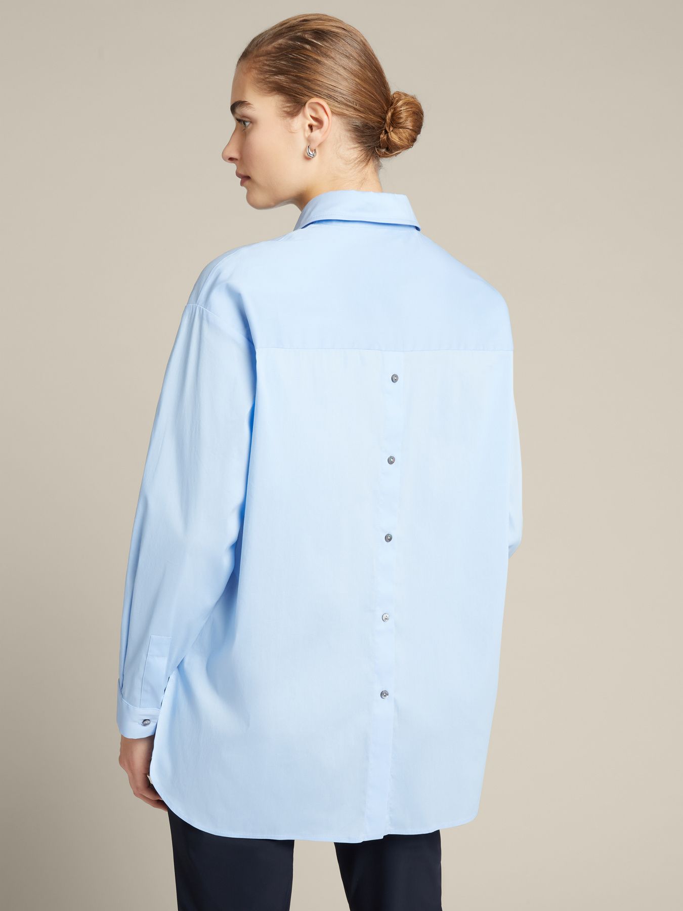 Классическая рубашка из хлопка. Отличный вариант как для образа на работу, так и для повседневной носки. Длинный рукав, удлиненная спинка, разрезы по бокам, декорирована пуговицами сзади.