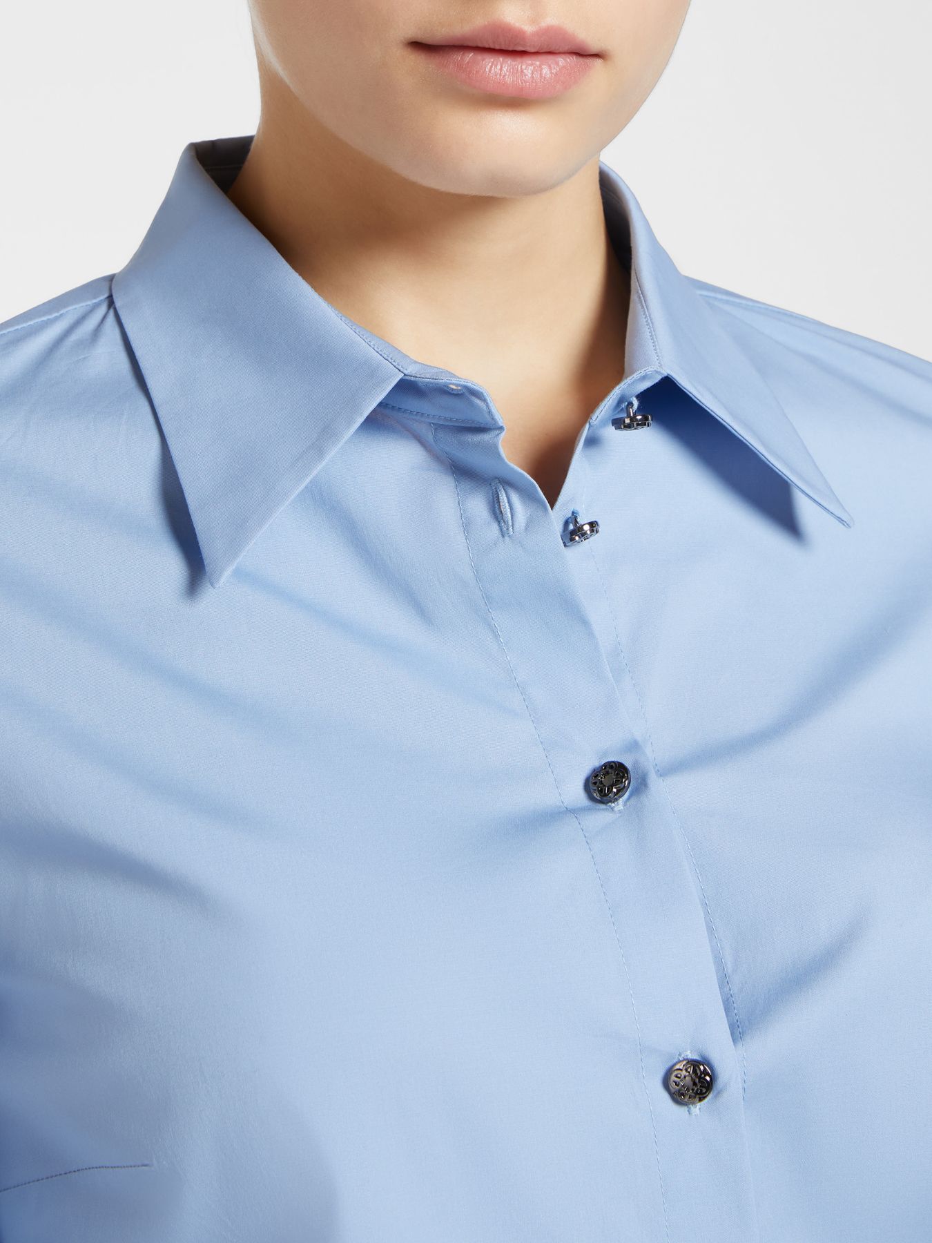 Блузка из эластичного хлопка украшена пуговицами с монограммой бренда. Благодаря базовому крою изделие идеально дополнит любой образ.