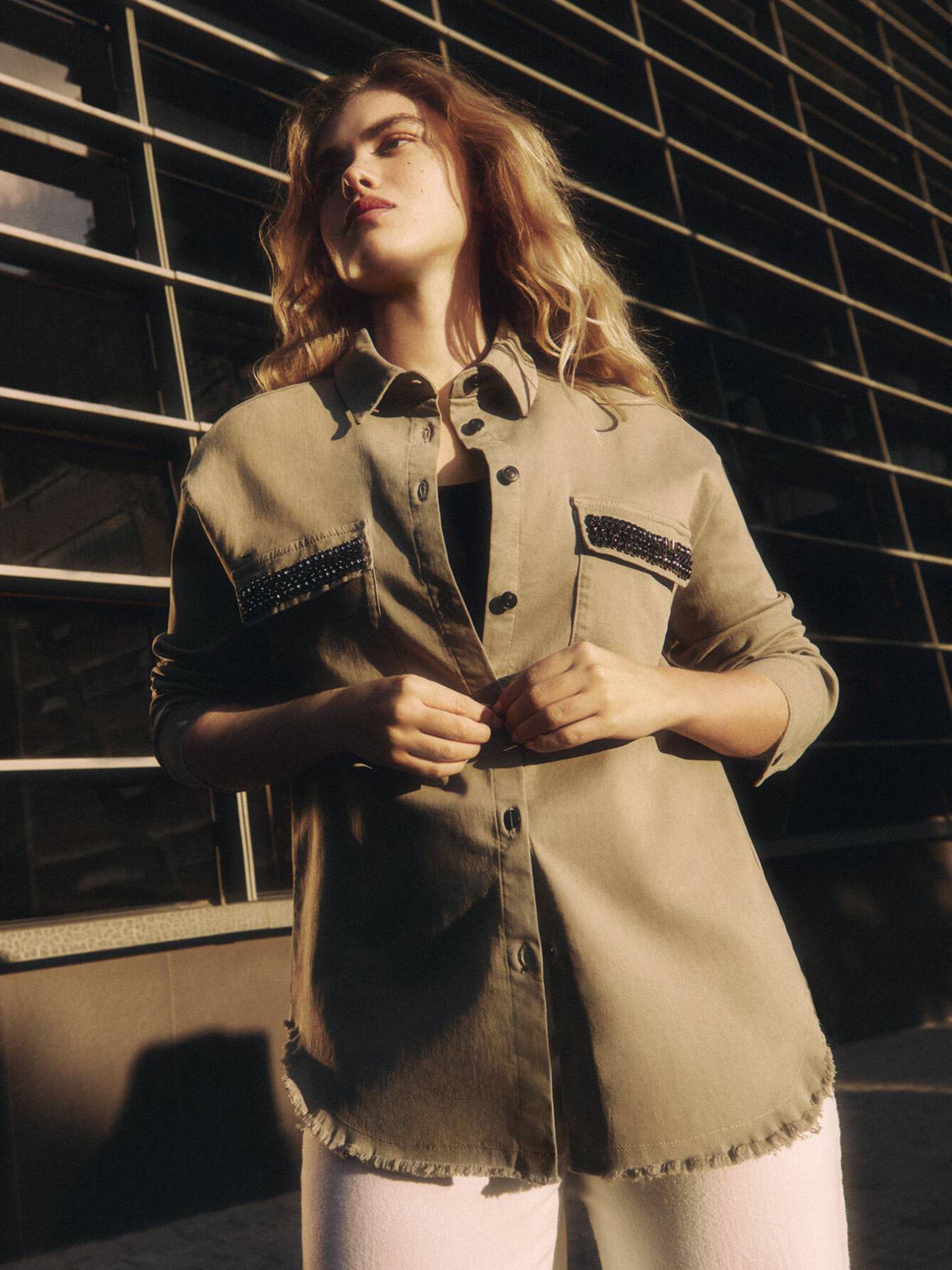 Джинсовая рубашка из хлопка хаки