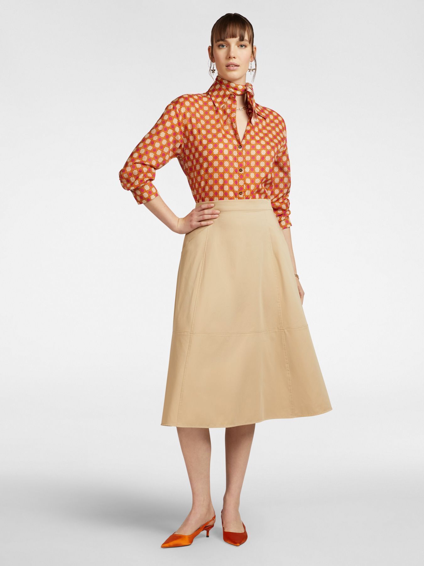 Юбка расклешенная из смесового хлопка бежевая