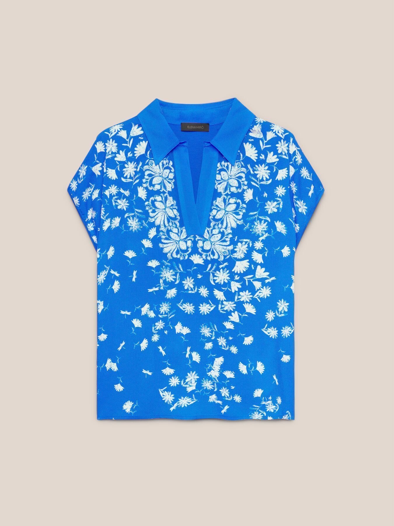 Футболка-поло из вискозы с принтом синяя
