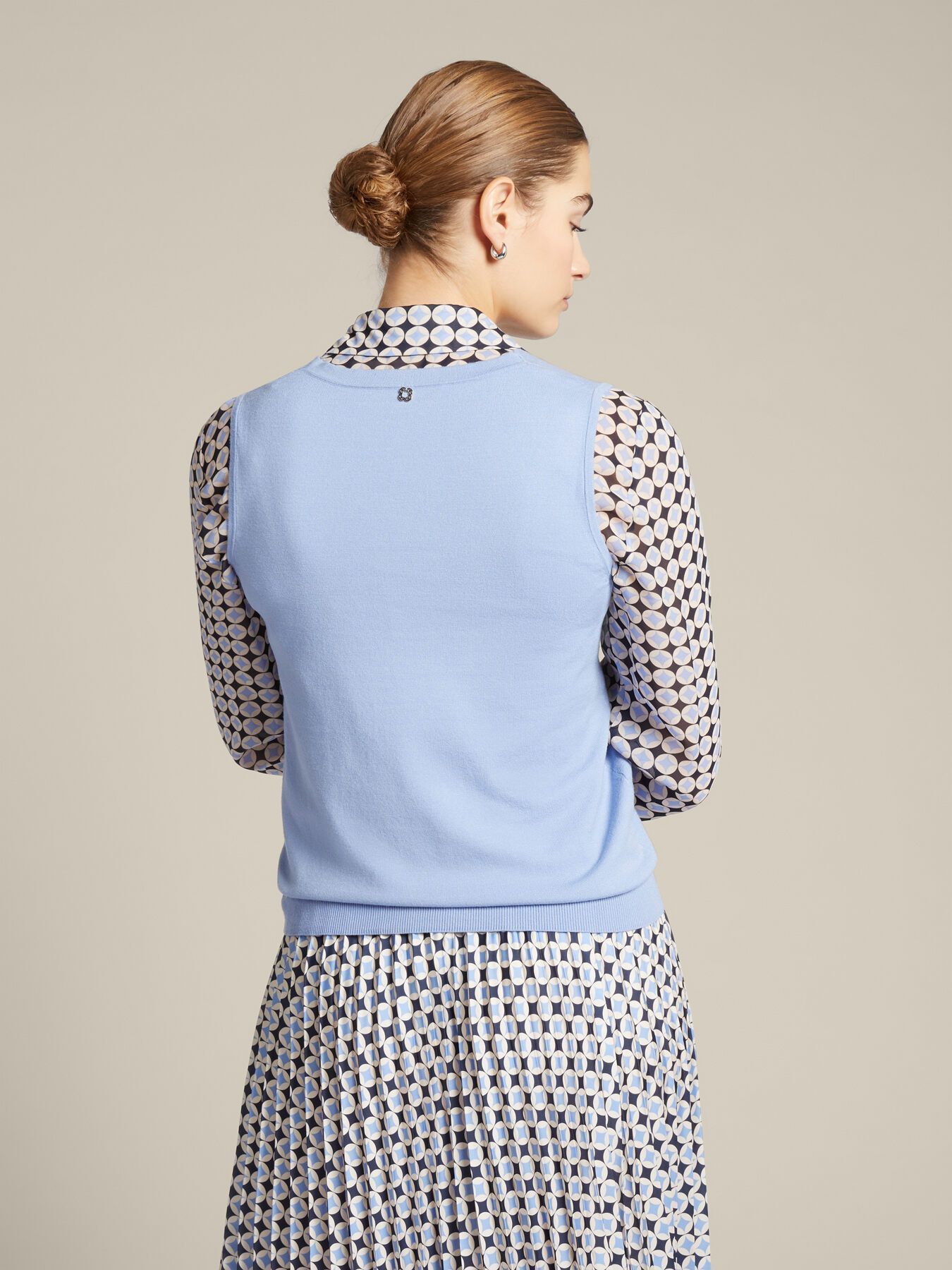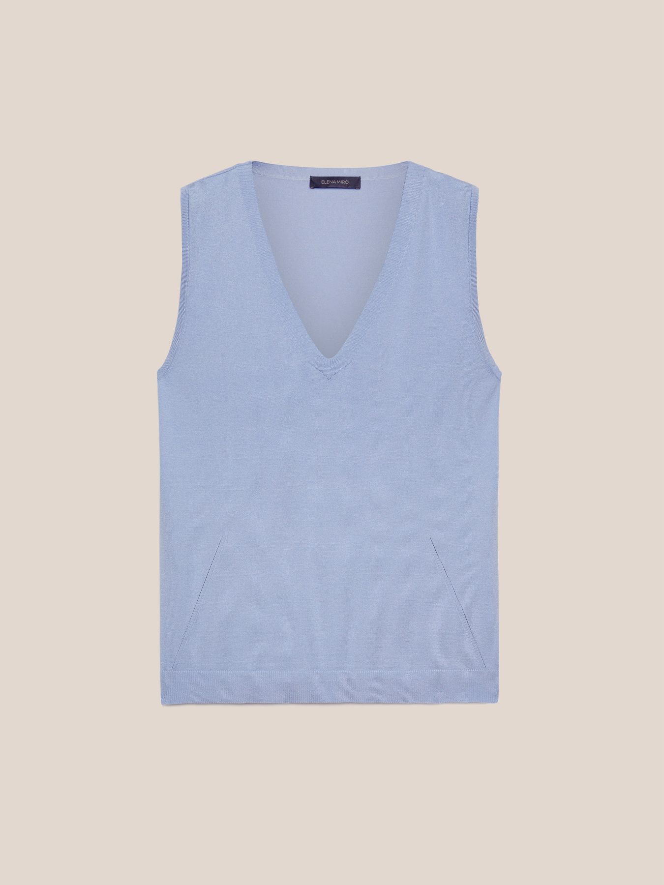 Женственный трикотажный топ из мягкой вискозы с заниженным V-образным вырезом. Базовая модель для составления образов с жакетом, кардиганом, блузками, футболками. Размер на модели: 46 RUS (44 IT) Параметры модели: рост 178 см, грудь 92 см, талия 66 см, бедра 101 см.