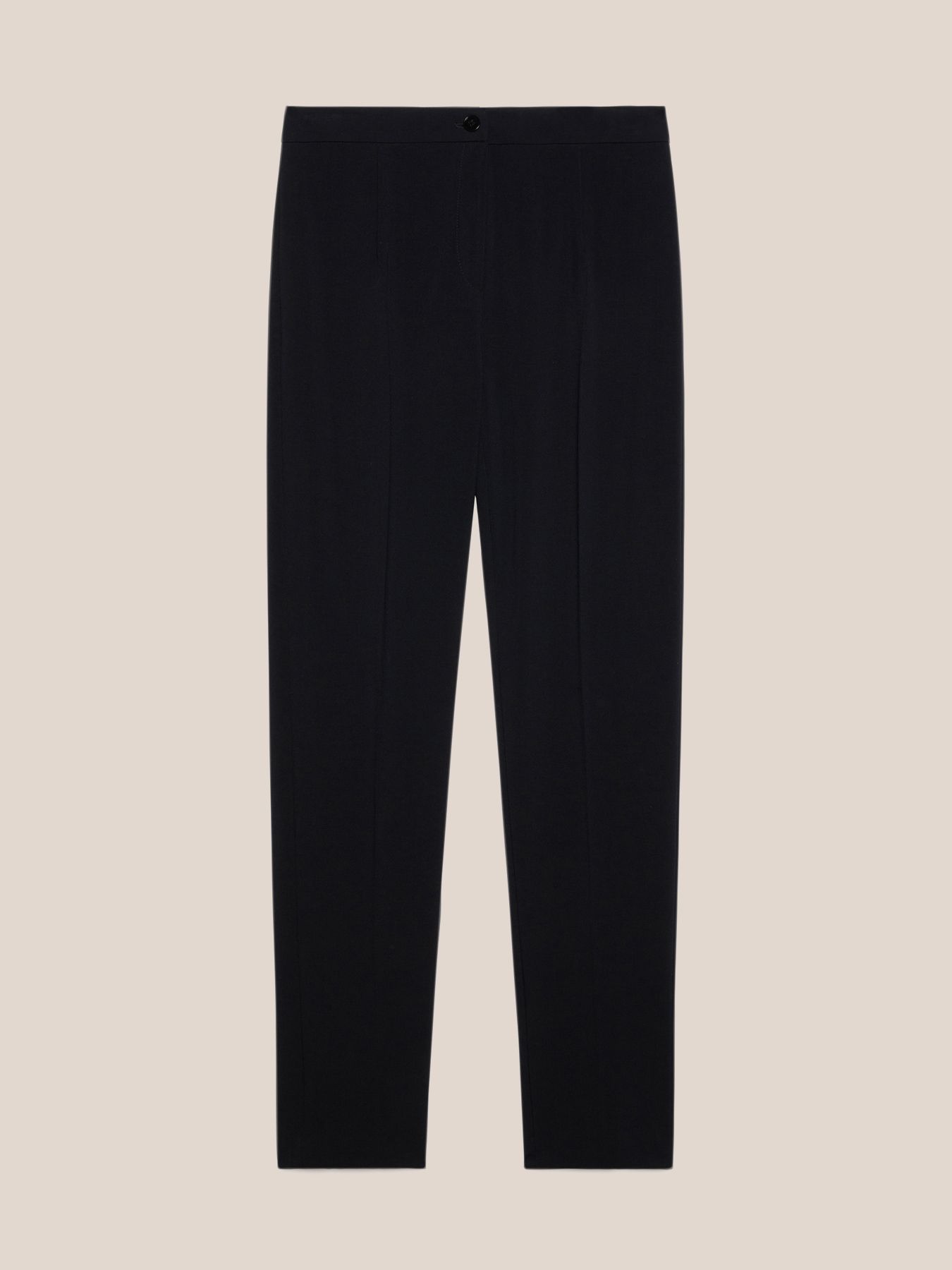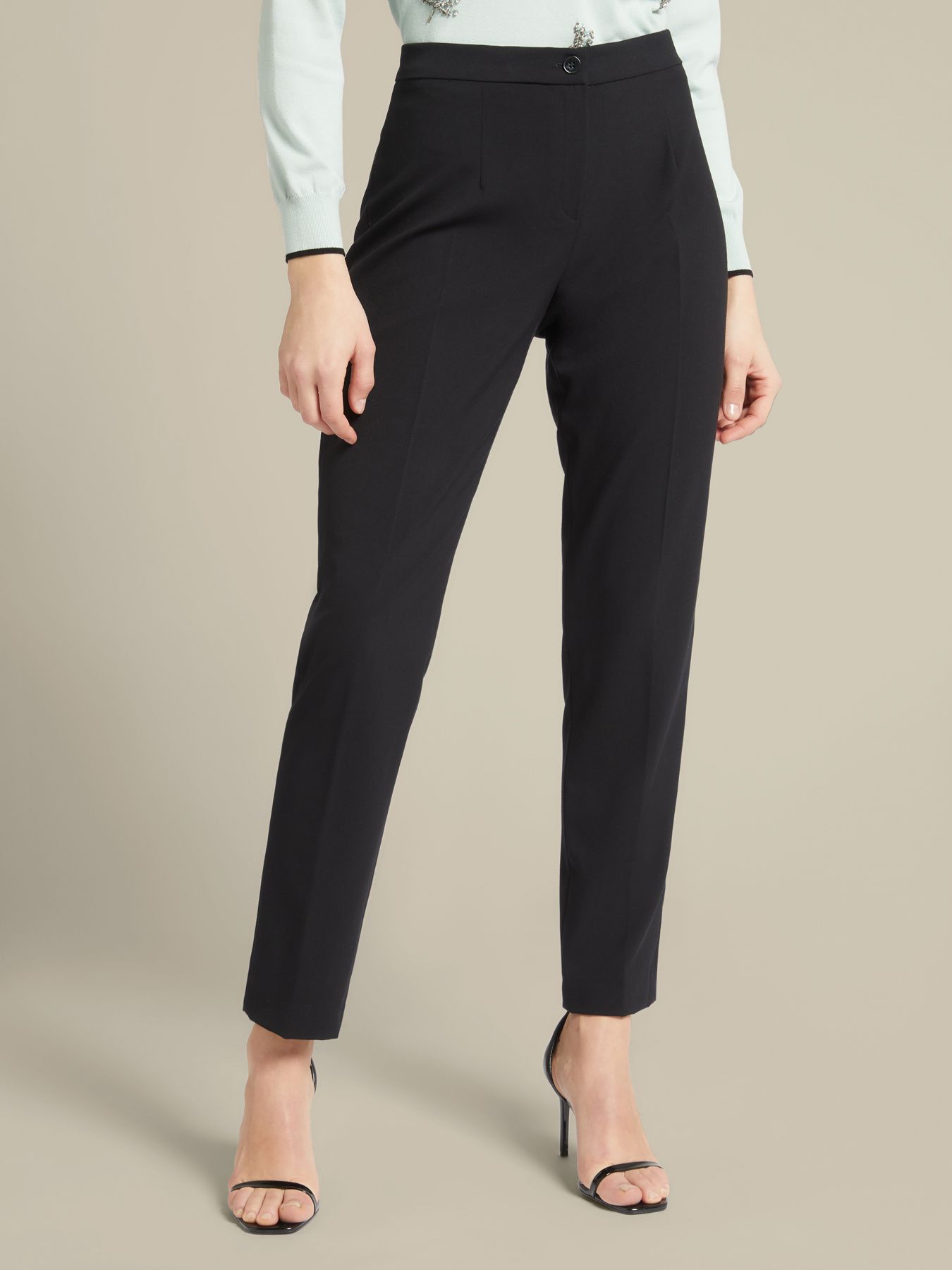 Элегантные классические брюки «дудочки» из стрейчевого твила, обеспечивающего идеальный силуэт и легкость движений. Стандартная линия талии, отглаженная складка спереди, застегиваются на потайную молнию и пуговицу. Идеальная пара к жакету как костюмная группа, к блузе свободного кроя, легкому кардигану. Одновременно просты, элегантны и шикарны в своем минимализме! Размер на модели: 46 RUS (44 IT) Параметры модели: рост 178 см, грудь 92 см, талия 66 см, бедра 101 см.