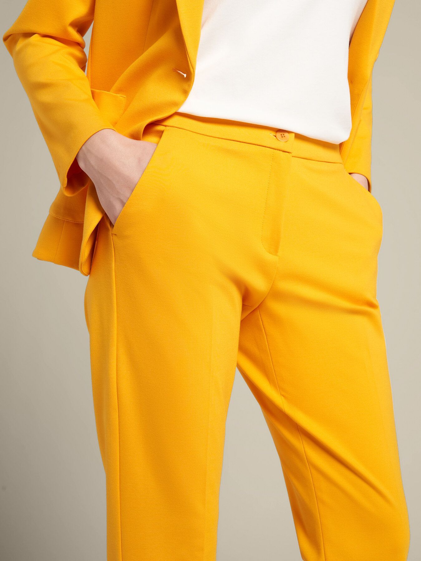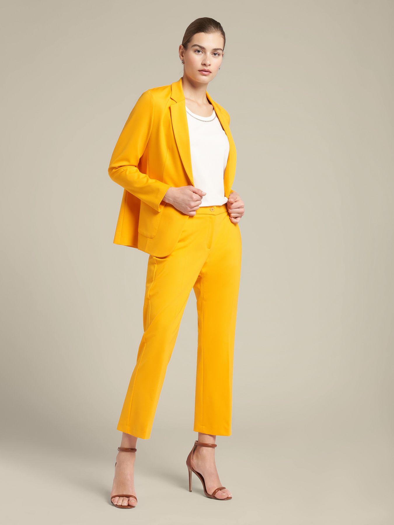 Базовые прямые брюки из вискозы. Эластичный пояс, стандартная линия талии, косые карманы, застегиваются на пуговицу и молнию. Качество материала и длина до щиколотки делают их идеальными для любого случая.