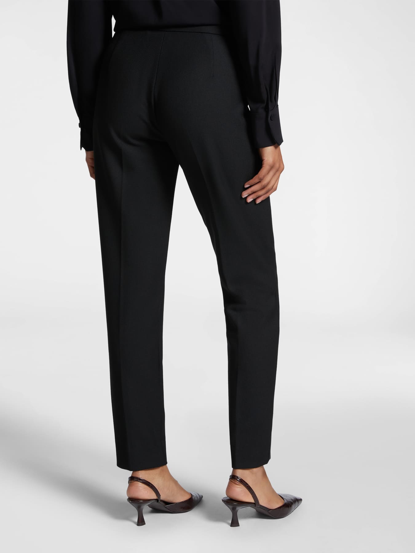 Зауженные брюки из эластичной ткани. Одновременно яркая и элегантная модель, необходимая в женском гардеробе. Идеально подходят для создания образов под формальные и повседневные случаи.