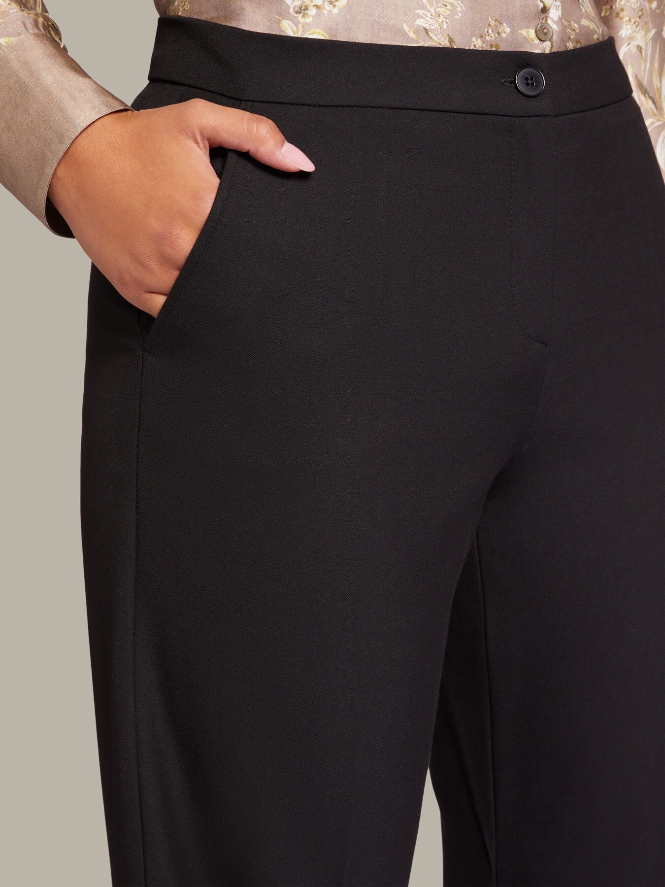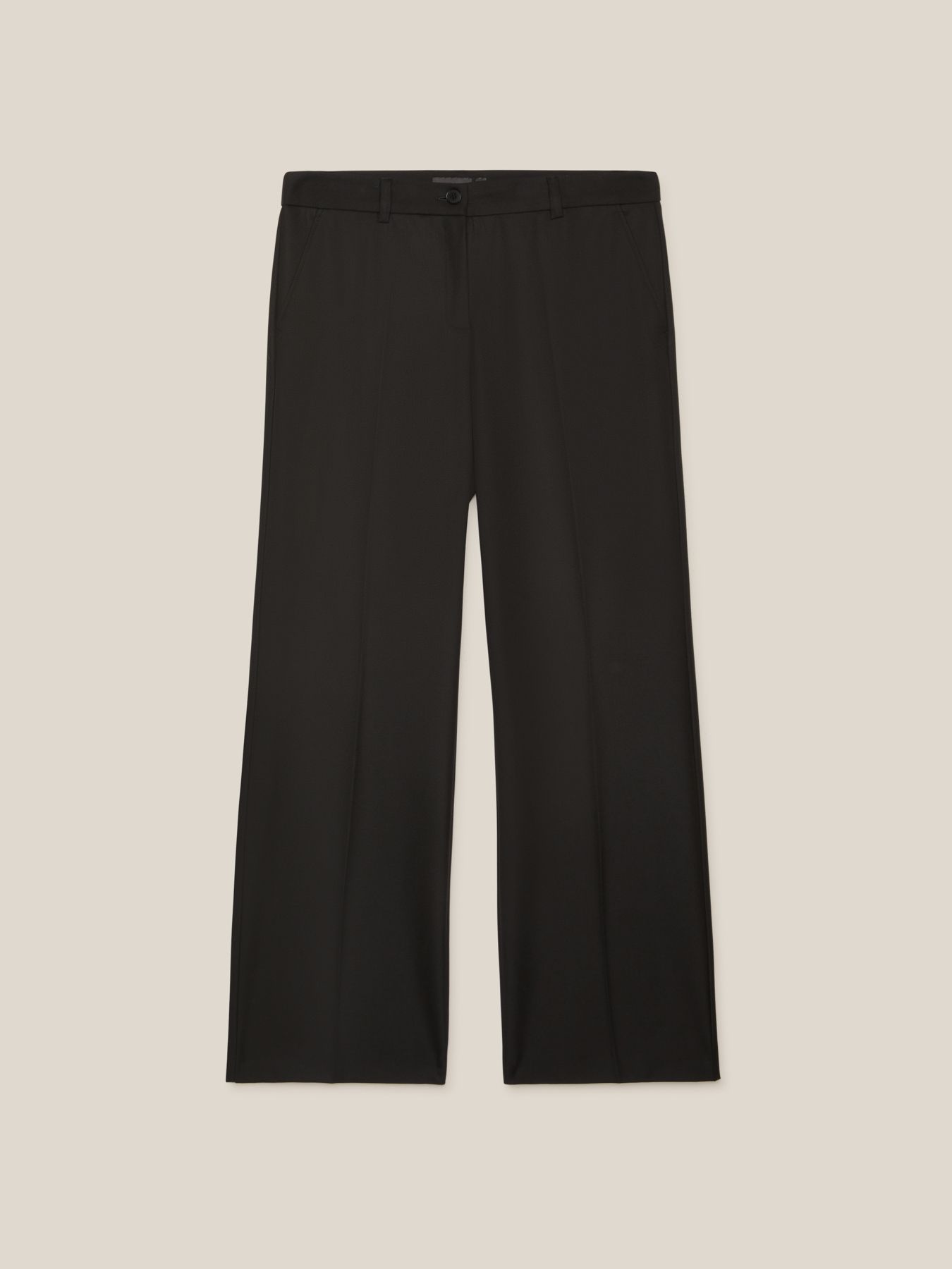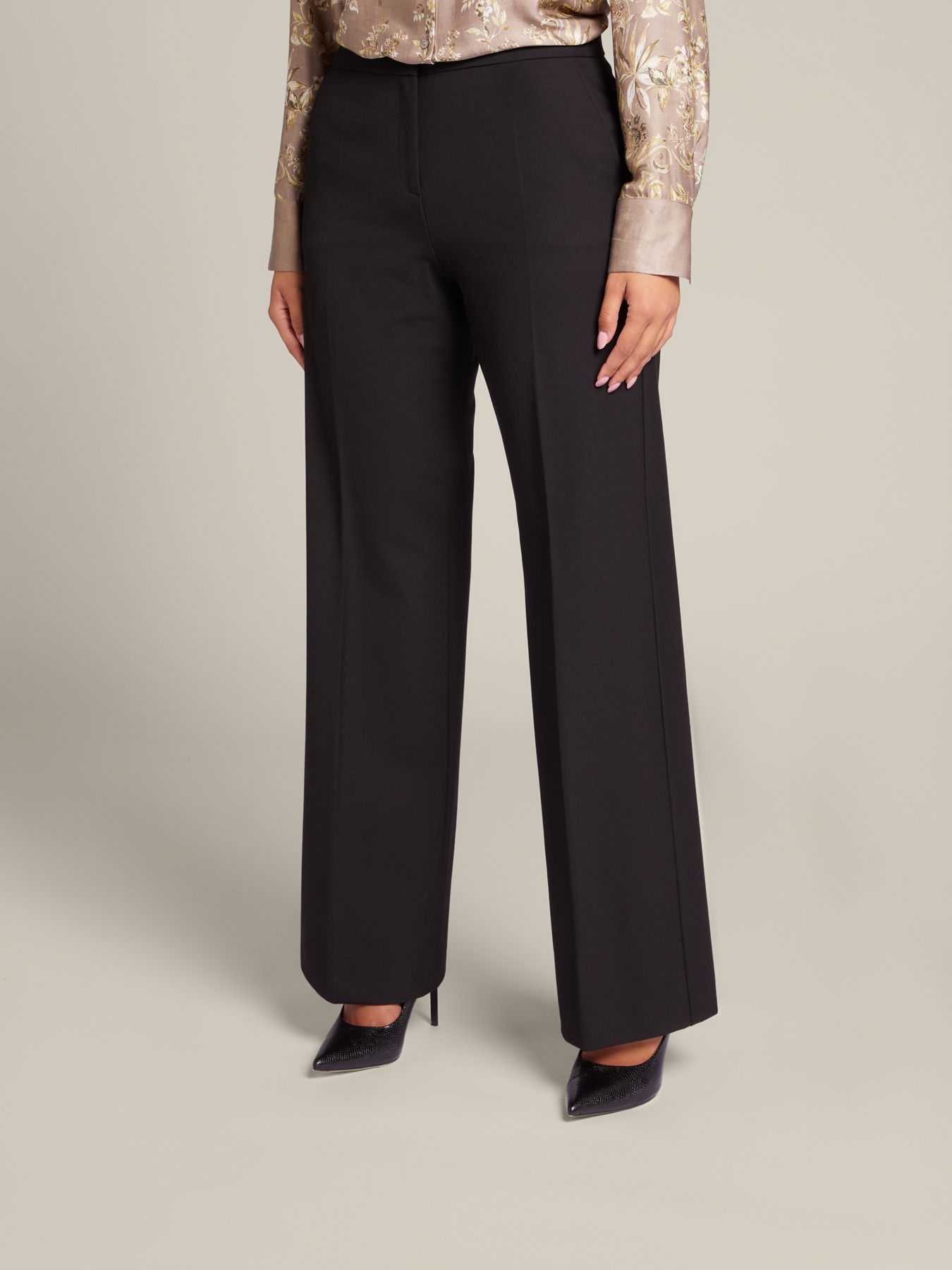 Элегантные брюки прямого кроя из мягкого эластичного твила. Струящаяся ткань с добавлением шерсти и вискозы. Отглаженная складка спереди, застегивается на потайную молнию и пуговицу.
