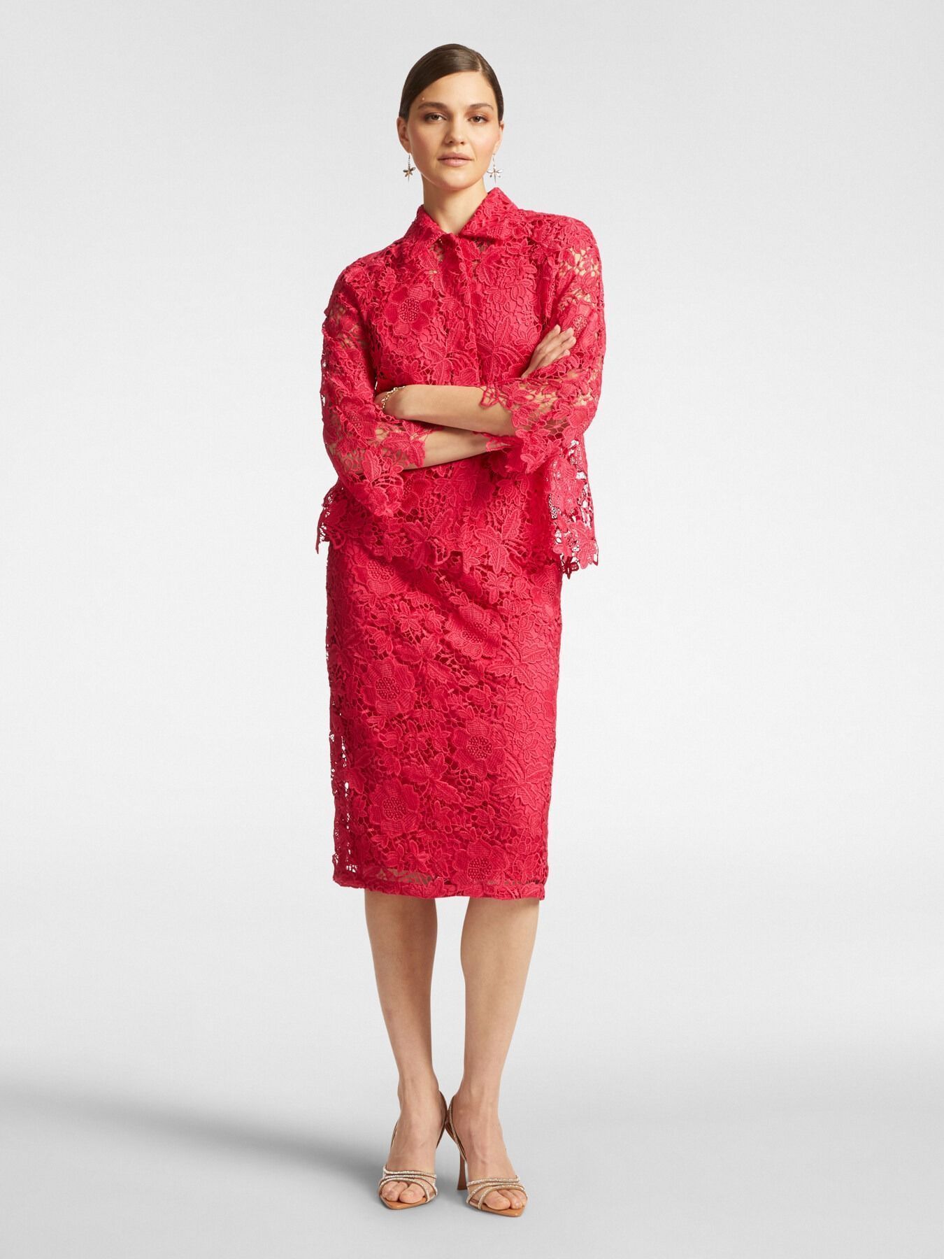 Юбка-миди выполнена в технике макраме. Изящный цветочный узор, яркий притягательный цвет, базовый крой. Все это создаёт уникальное изделие, прекрасно дополняющее весенние образы. Идеально сочетается с жакетом и топом в комплекте.