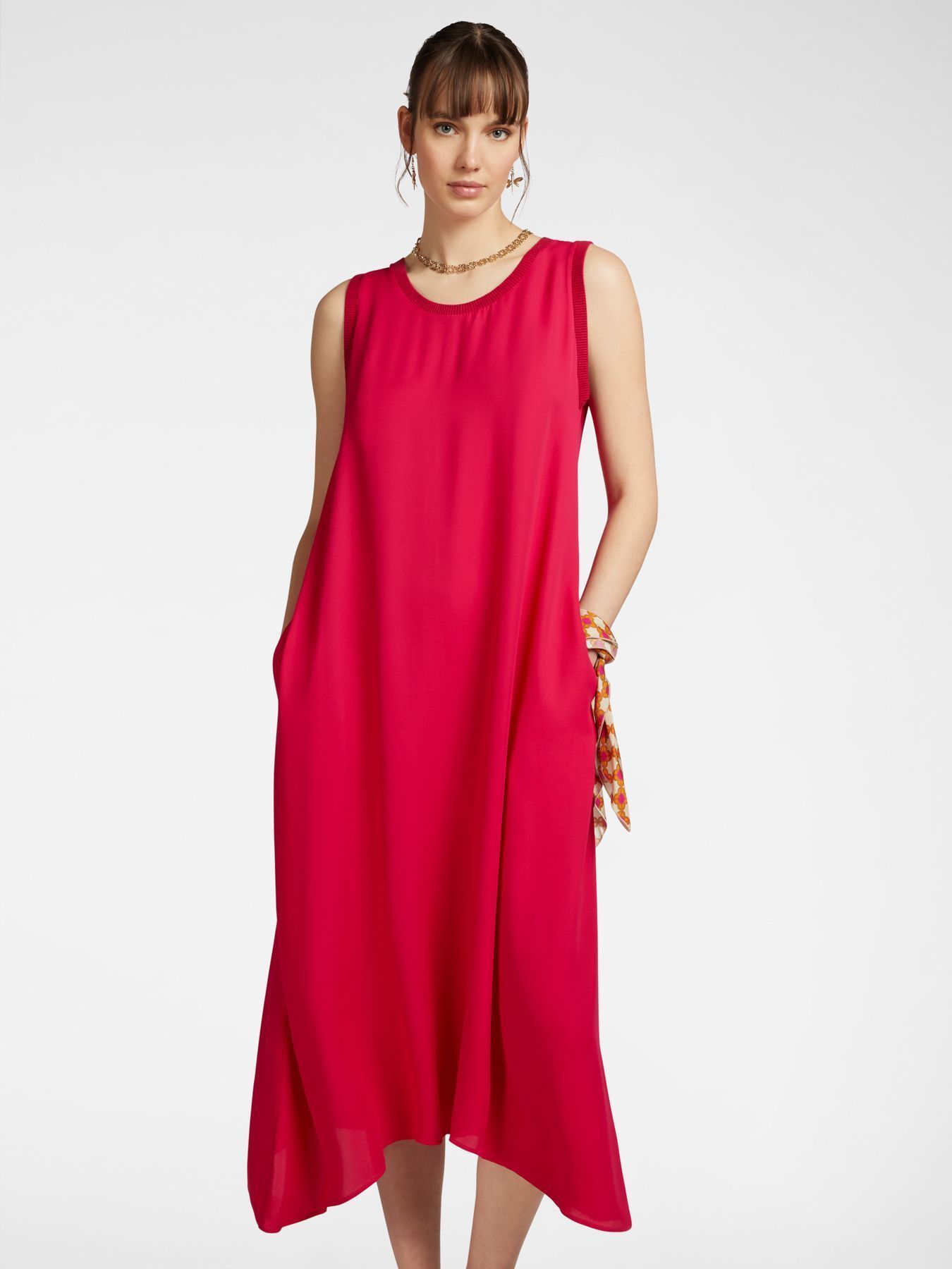 Платье-миди из 100% вискозы розовое