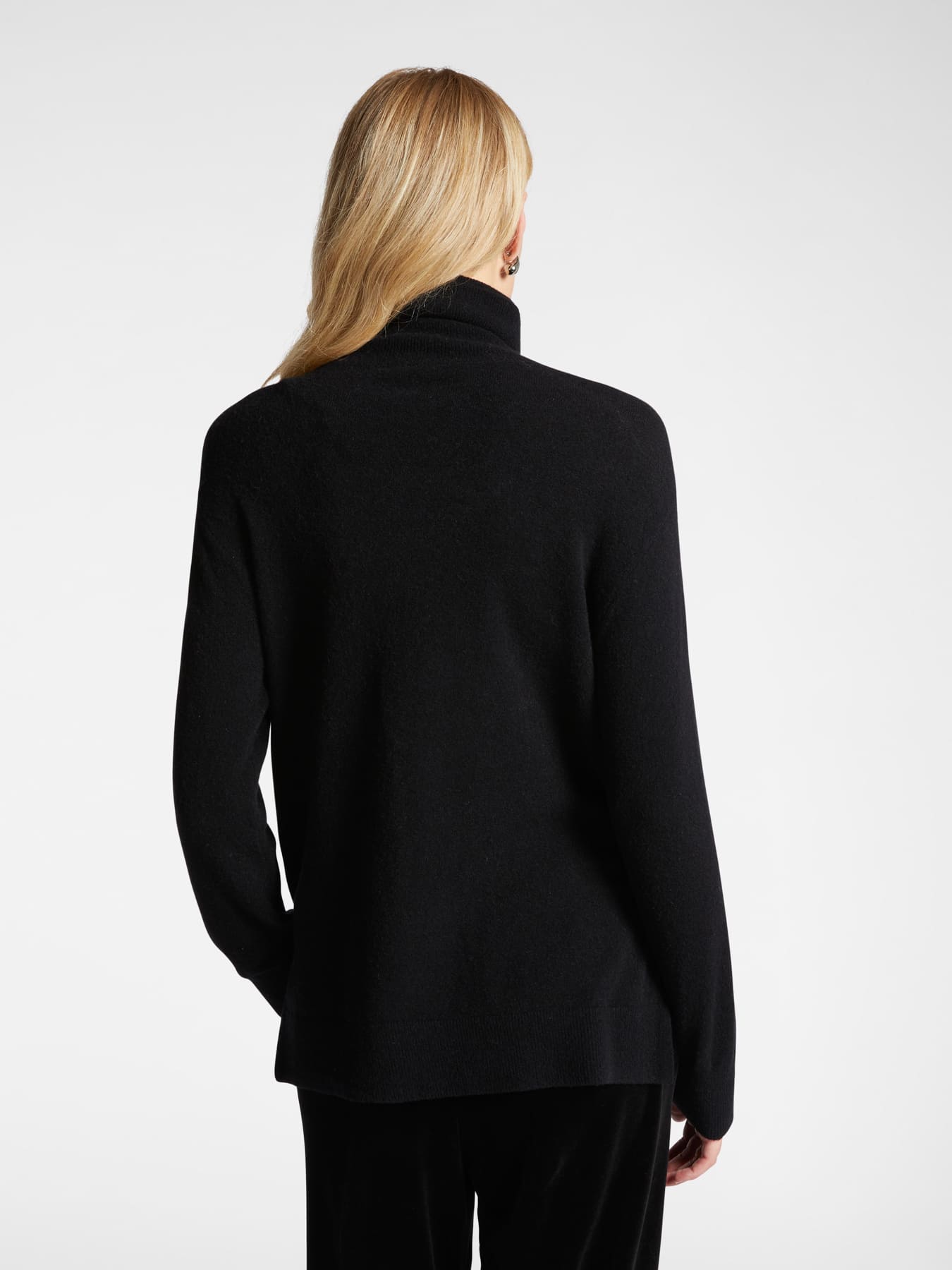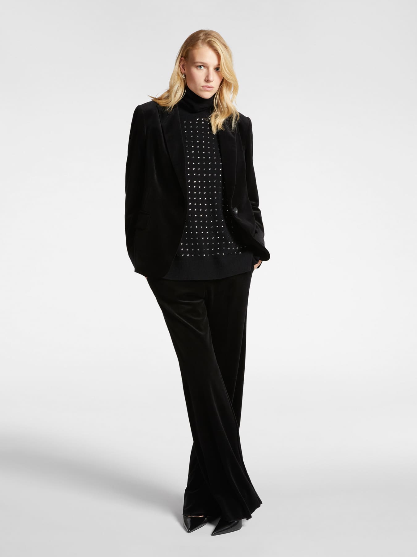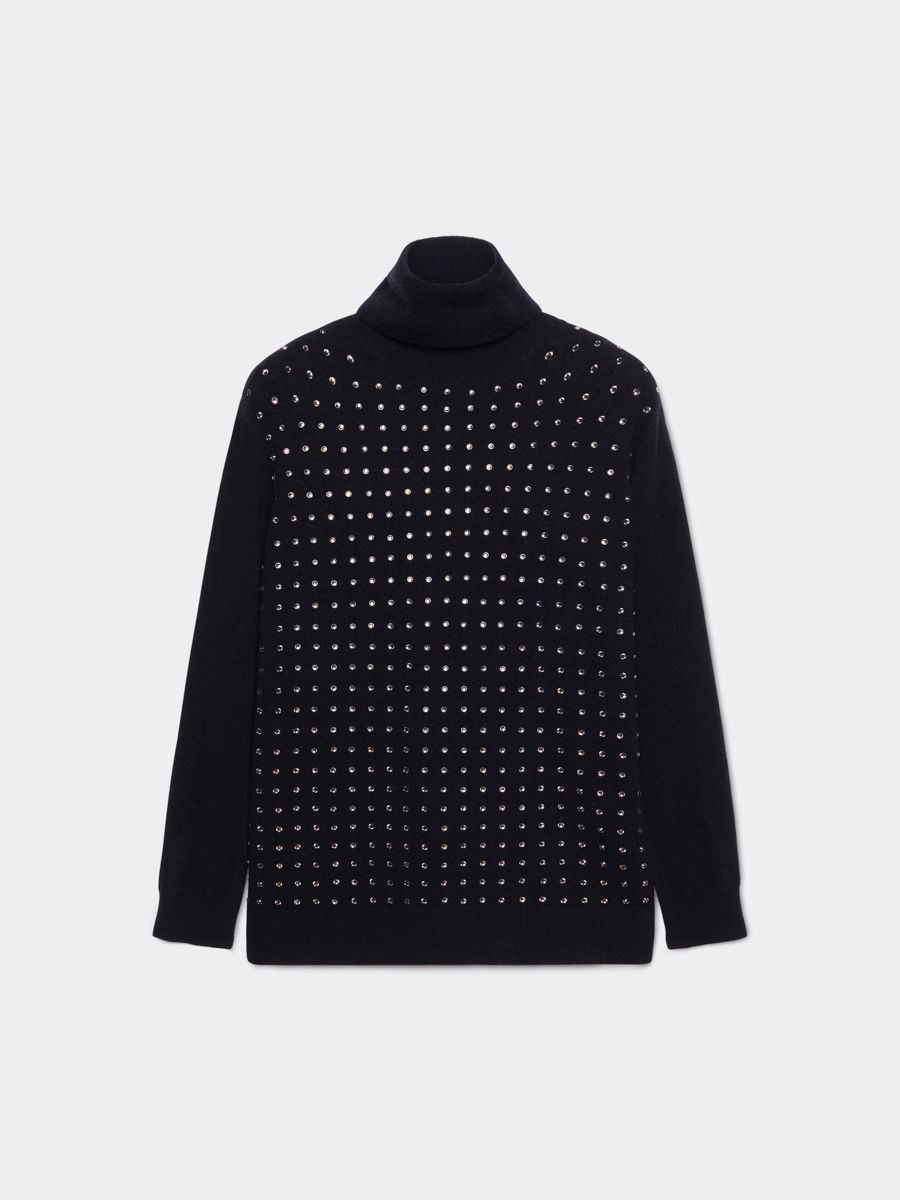 Свитер с высоким воротом выполнен из смесовой шерсти и украшен аппликацией из стразов спереди.