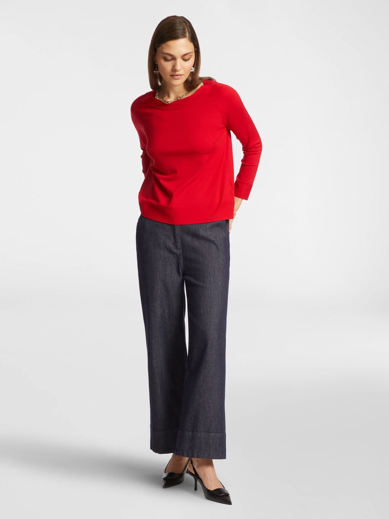 Джемпер прямого кроя из смесовой вискозы и вырезом-лодочкой. Приятный цвет, классический крой. Незаменимая вещь в гардеробе.